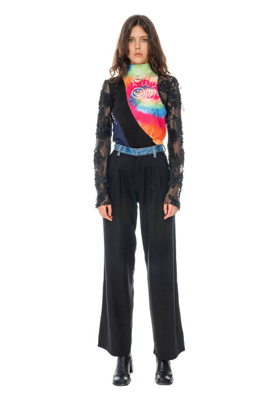 Slim Black Patchwork Pants