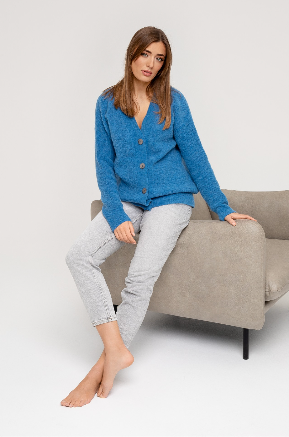 This soft-to-skin Corn Wool Sweater - Blue is ethically and locally made from the highest quality baby alpaca wool: soft and gentle against your skin. It is suitable for women with sensitive skin - no irritation and no red skin marks.