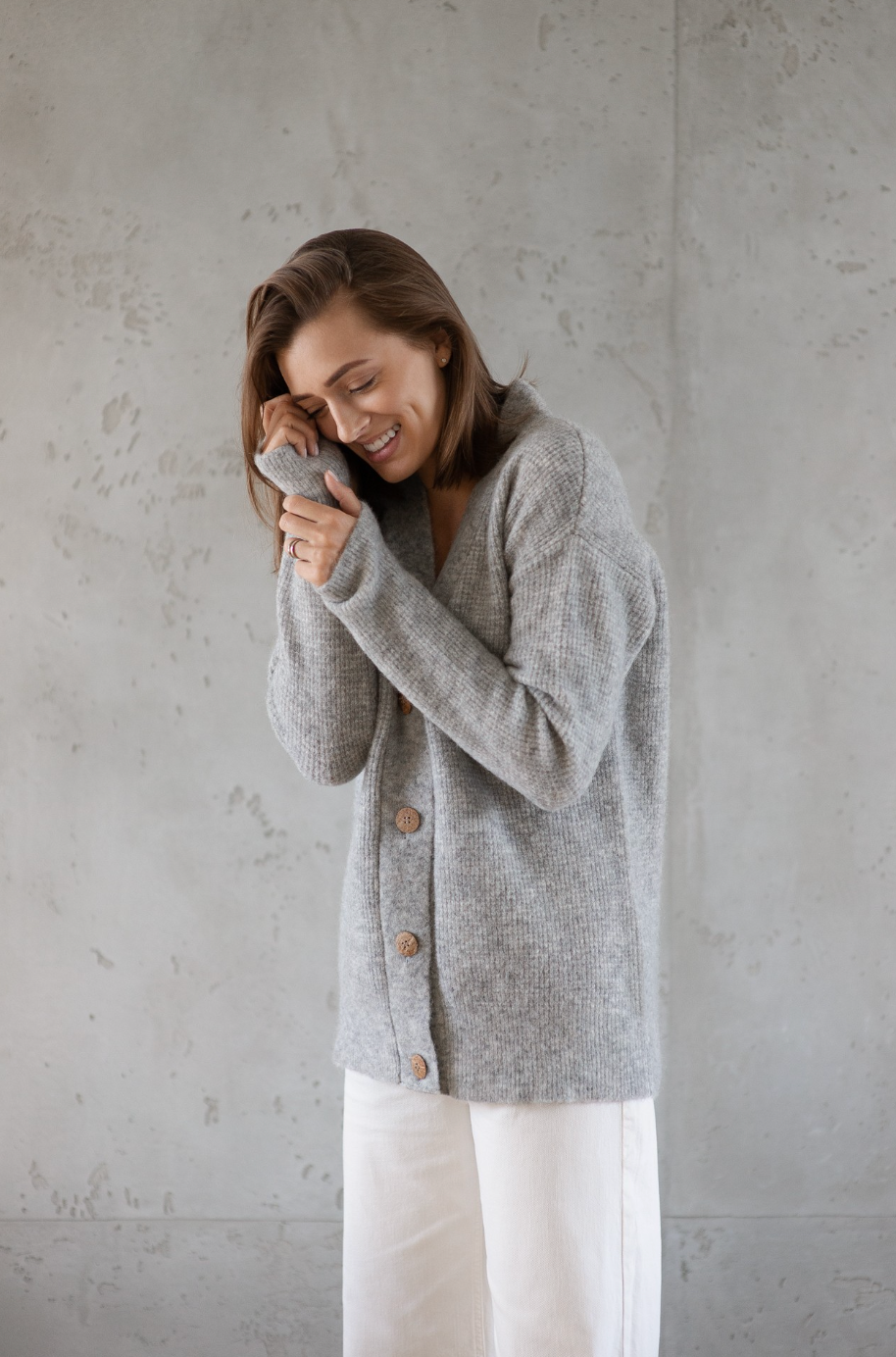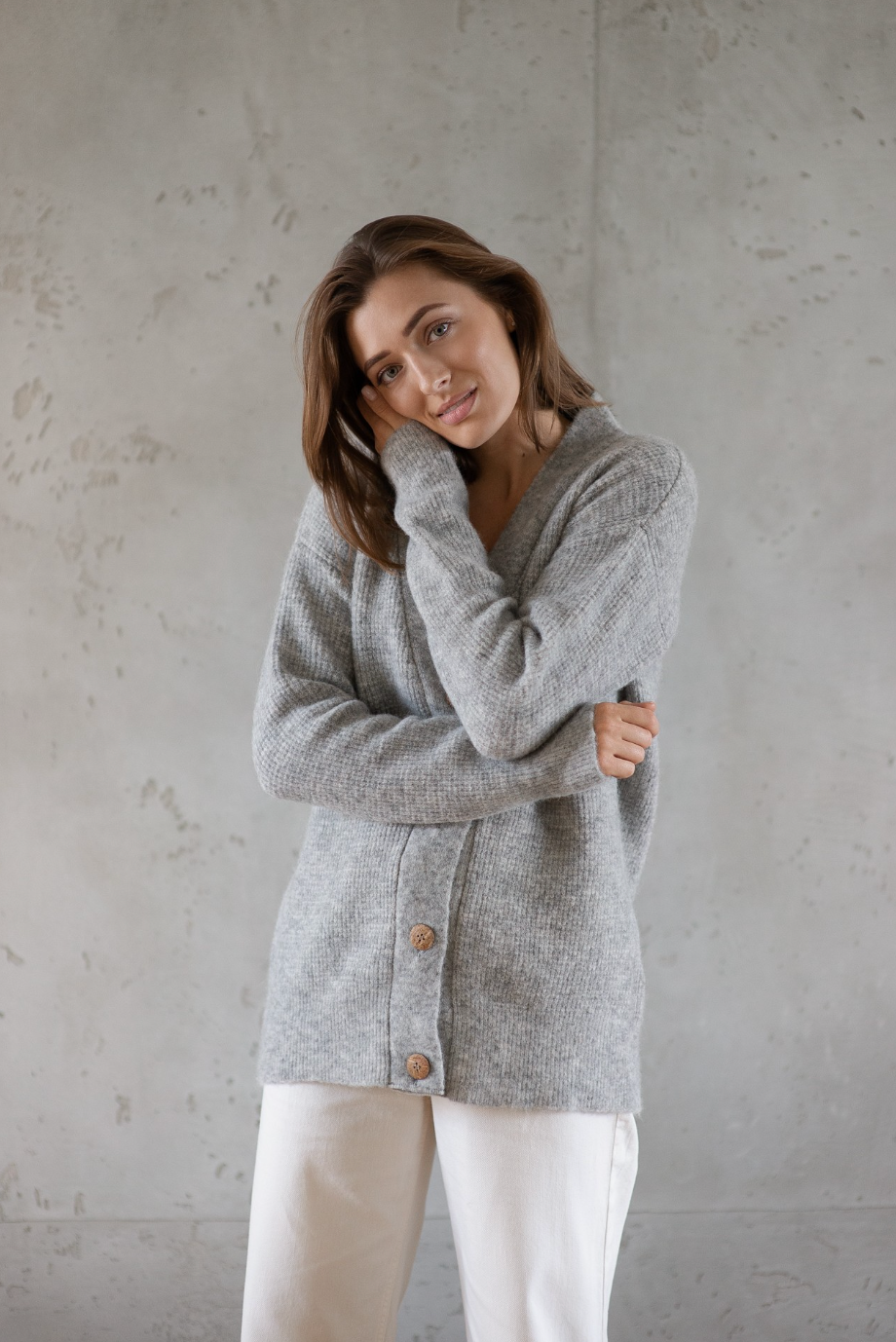 This soft-to-skin Corn Wool Sweater - Grey is ethically and locally made from the highest quality baby alpaca wool: soft and gentle against your skin. It is suitable for women with sensitive skin - no irritation and no red skin marks.
