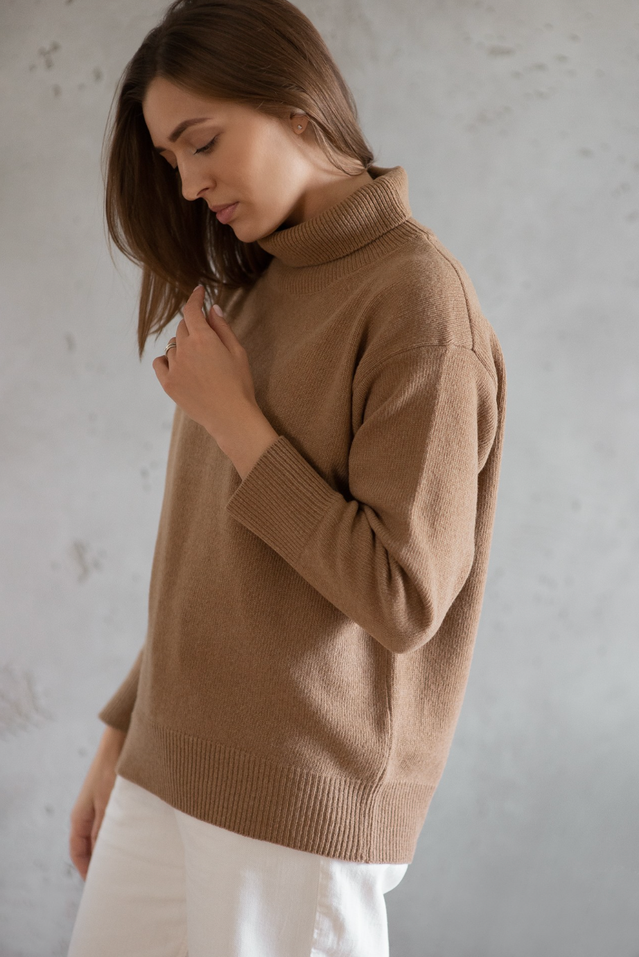 Cosy Classic Oversized Wool Turtleneck - Camel