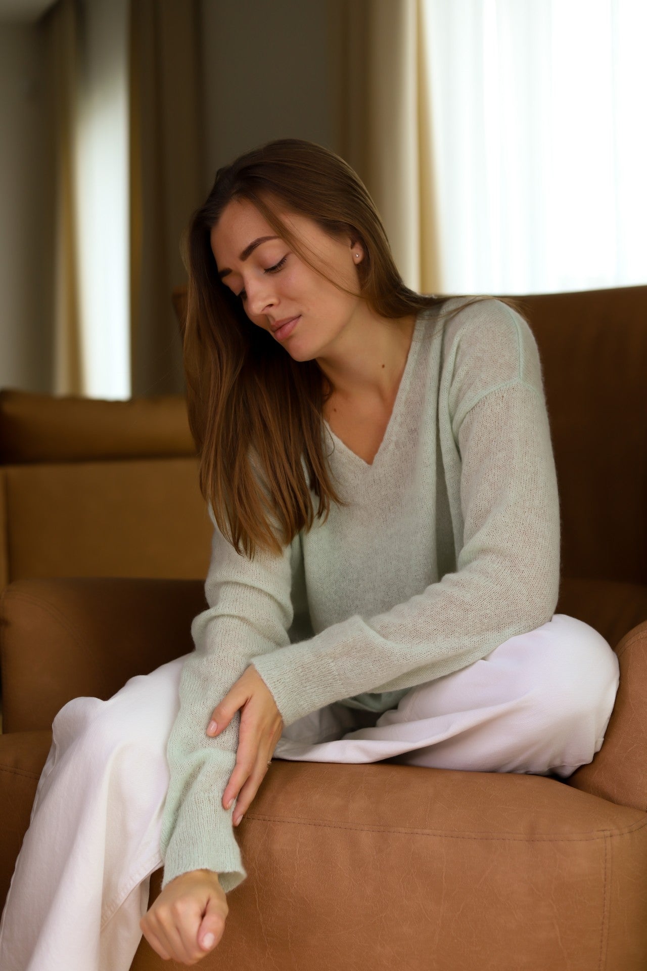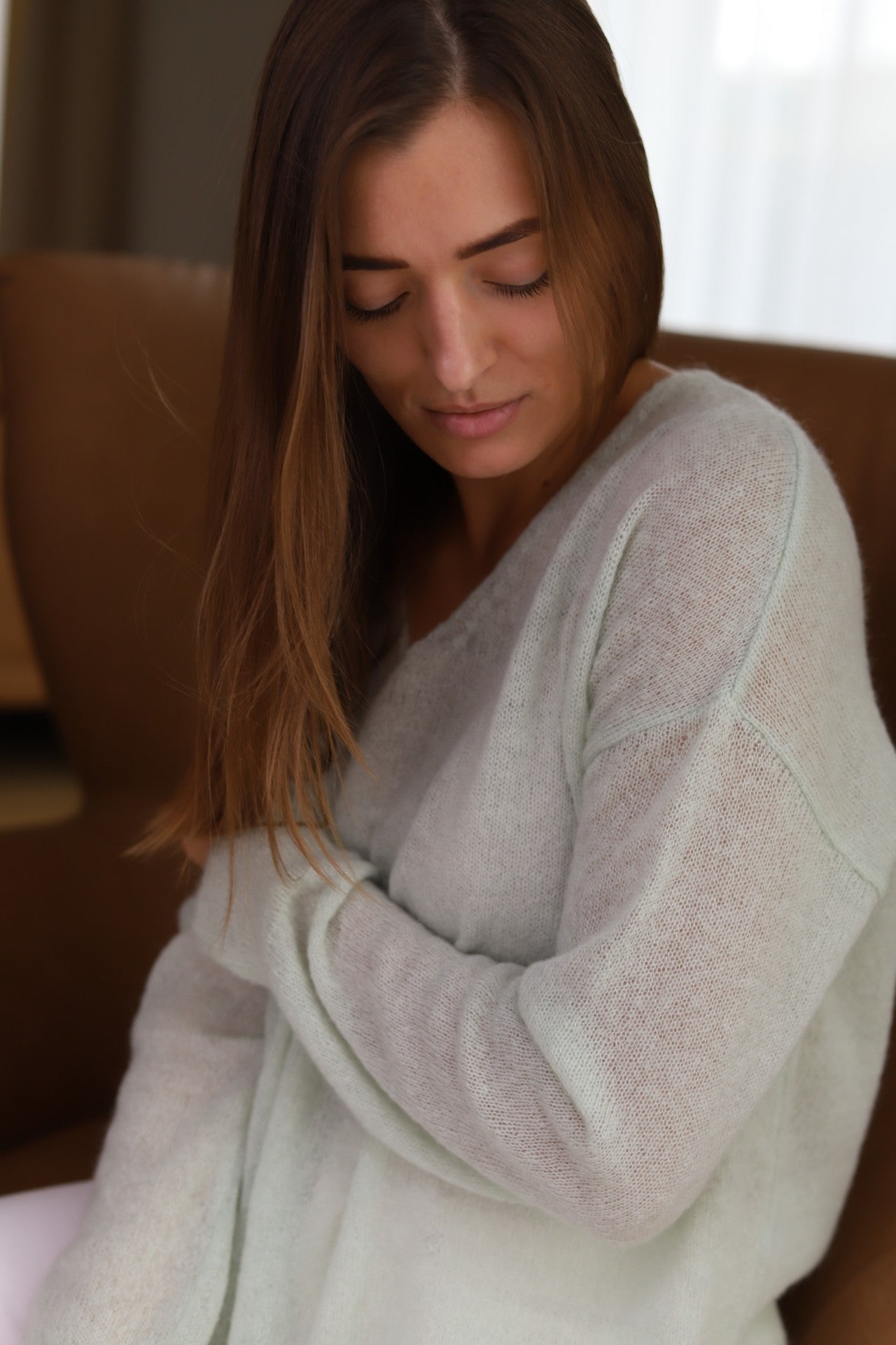 Mohair Wool Triangle Sweater - Light Green