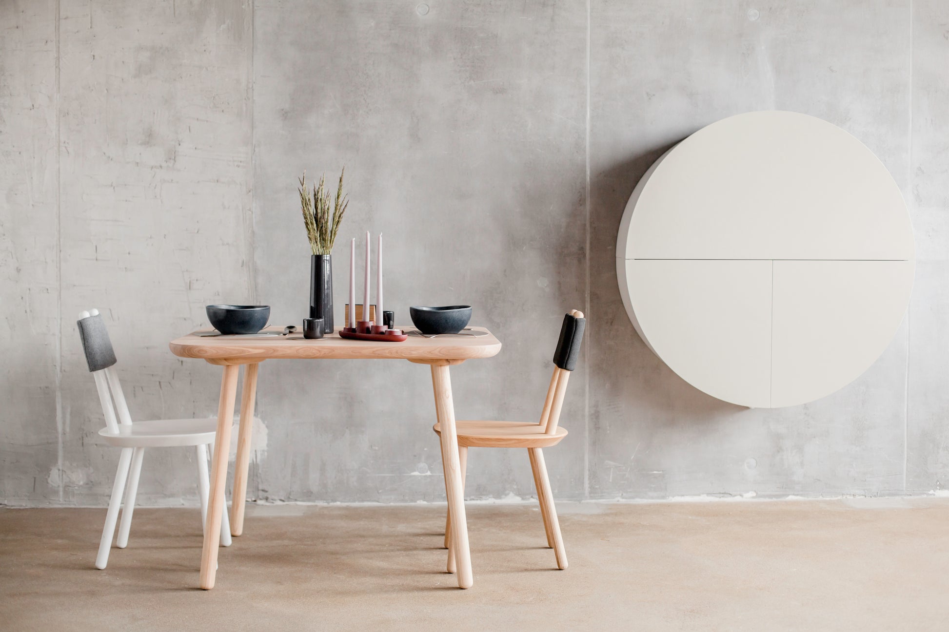 This Award-winning playful chair is stripped to the minimum: a carved solid ash seat and six legs of equal length to screw. It takes pitch-perfect accuracy to design its simple looks. Every single detail is carefully studied, and the length and angles of the legs are engineered to obtain the best proportions and offer superior ergonomics and a great sitting position. All this and the added flexible foam backrest make NAÏVE a surprisingly comfortable chair. It takes a minute to assemble it, and another one to flat-pack it back into a small box for transportation or shipping.