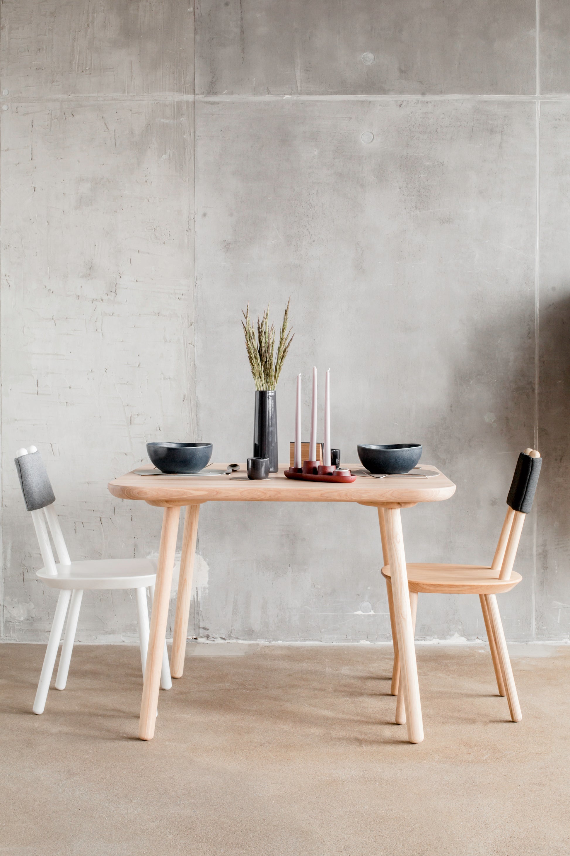 It feels as if the Naïve Dining Chair Ash Wood could have been drawn by a child – six sticks and one seat. That’s all there is to it!