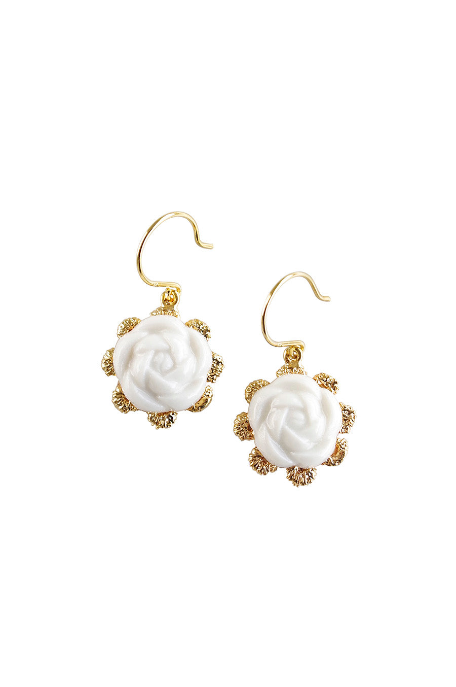 The mini version - Mini Camellia Flower Charm Earrings, is also available.