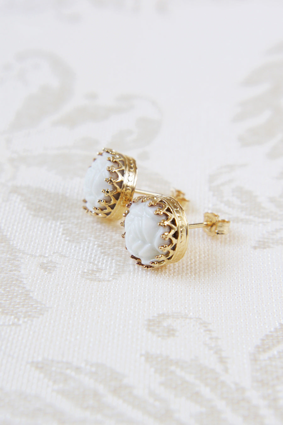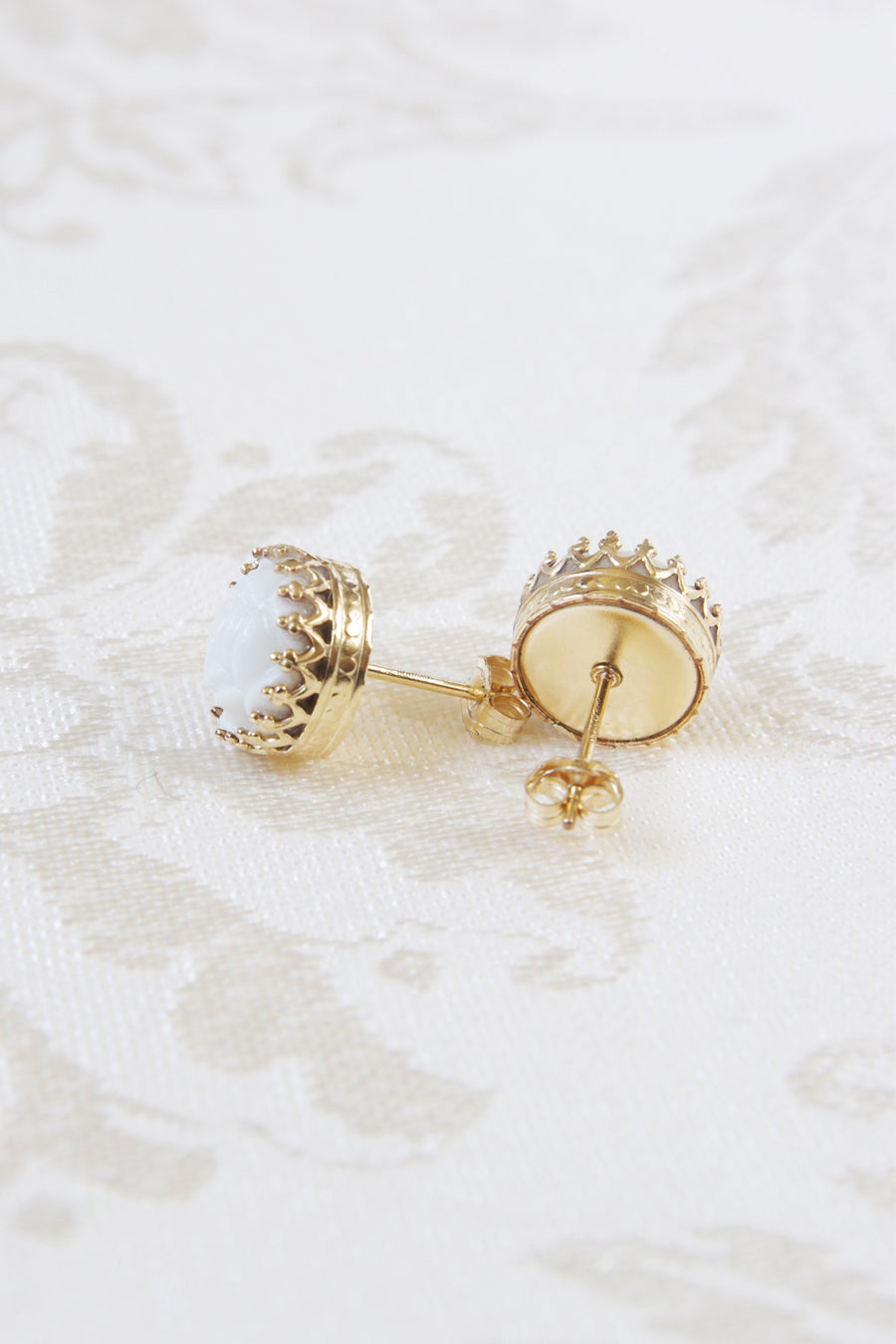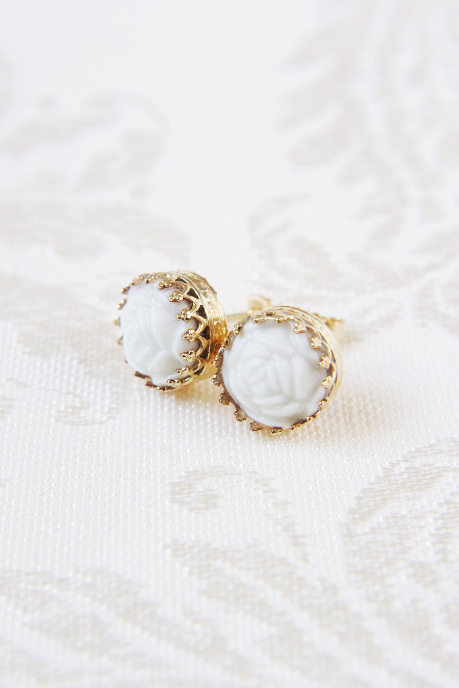 Mini Round Porcelain Rose Gold-Filled Stud Earrings