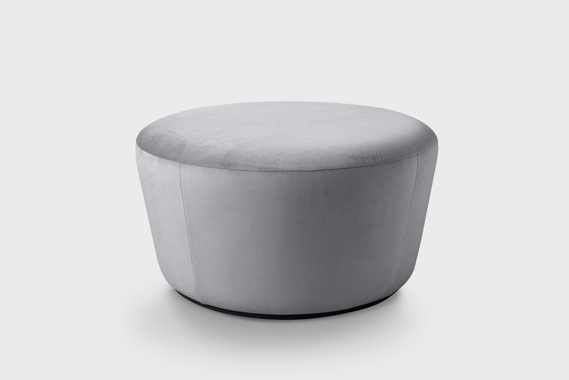 Naïve pouf is available in two sizes and the same fabrics as Naïve Sofa — from soft velour to cozy boucle or natural leather.
