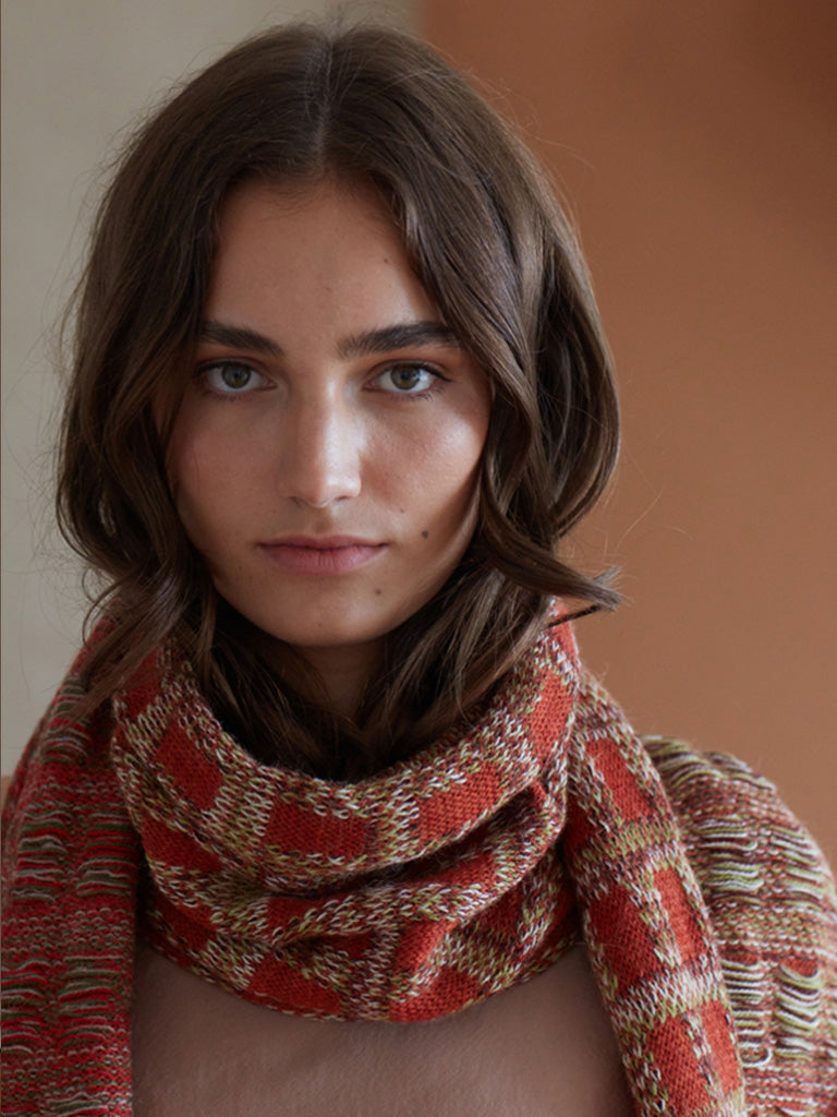 This Napkini Copper Wool Scarf from Anna Maria Angelika is made of Alpaca wool yarn, which was discovered at a small spinning mill in Peru.