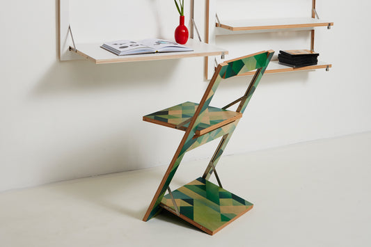 Fläpps Folding Chair – Criss Cross Green (on birch)