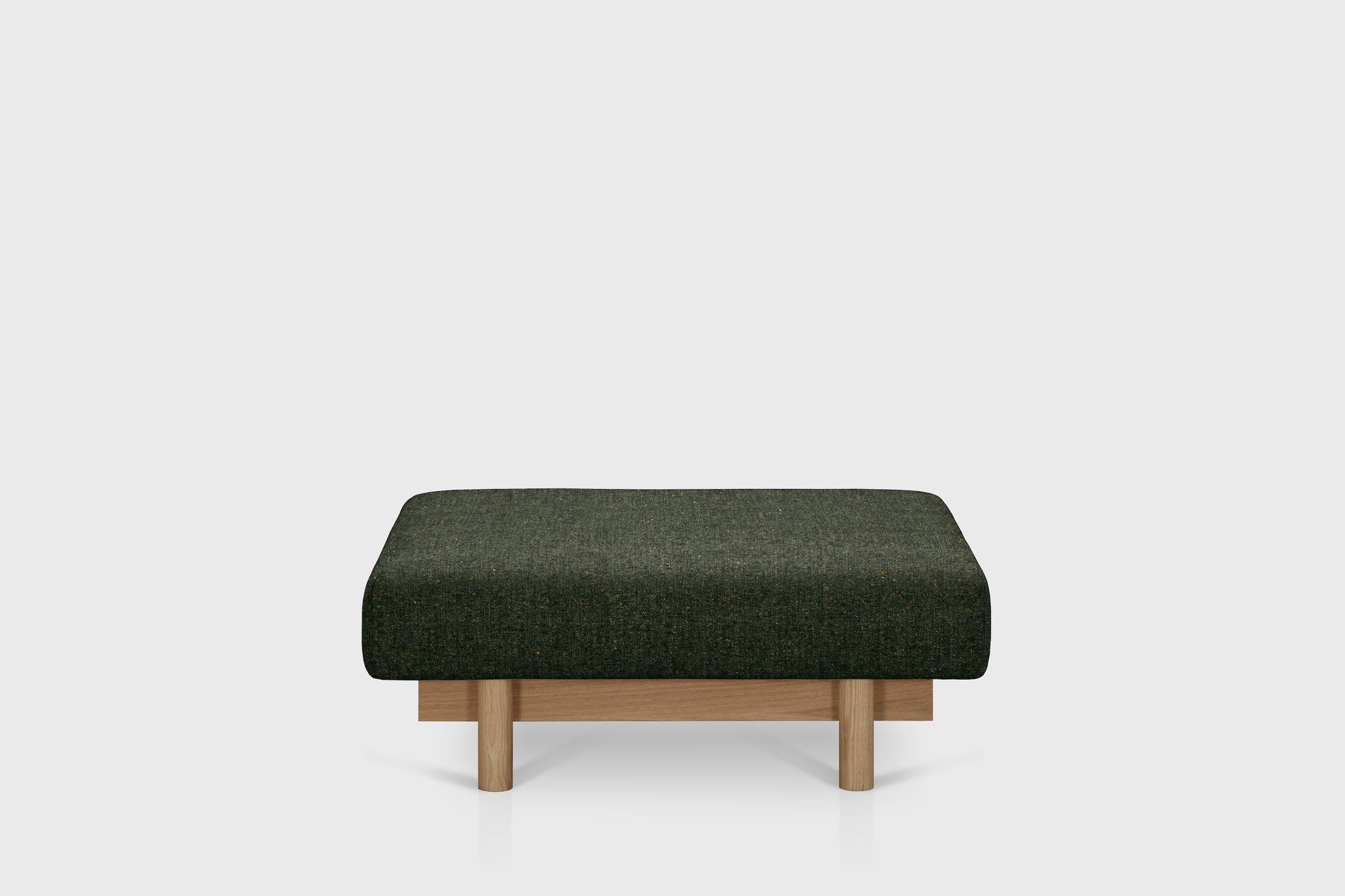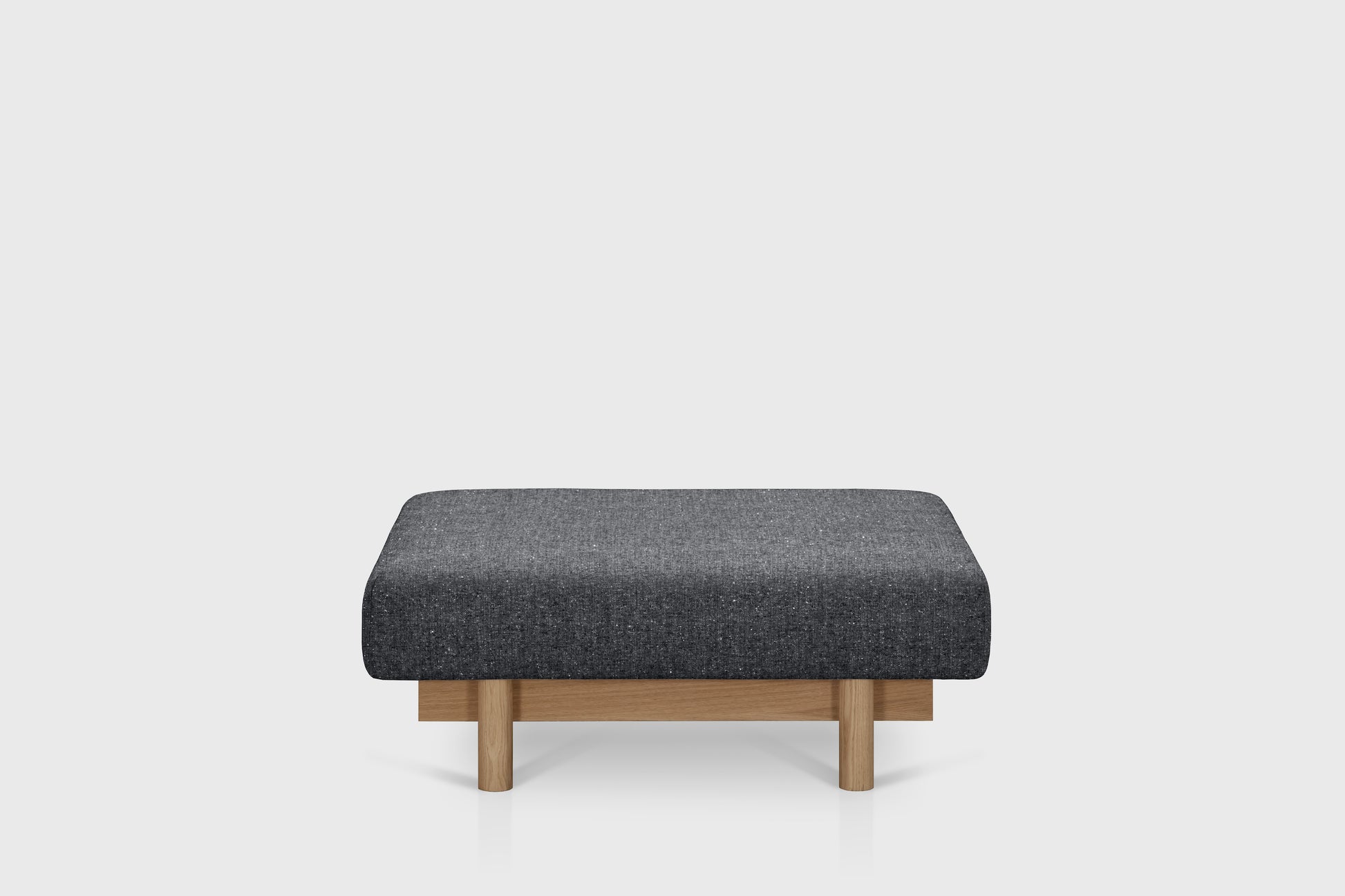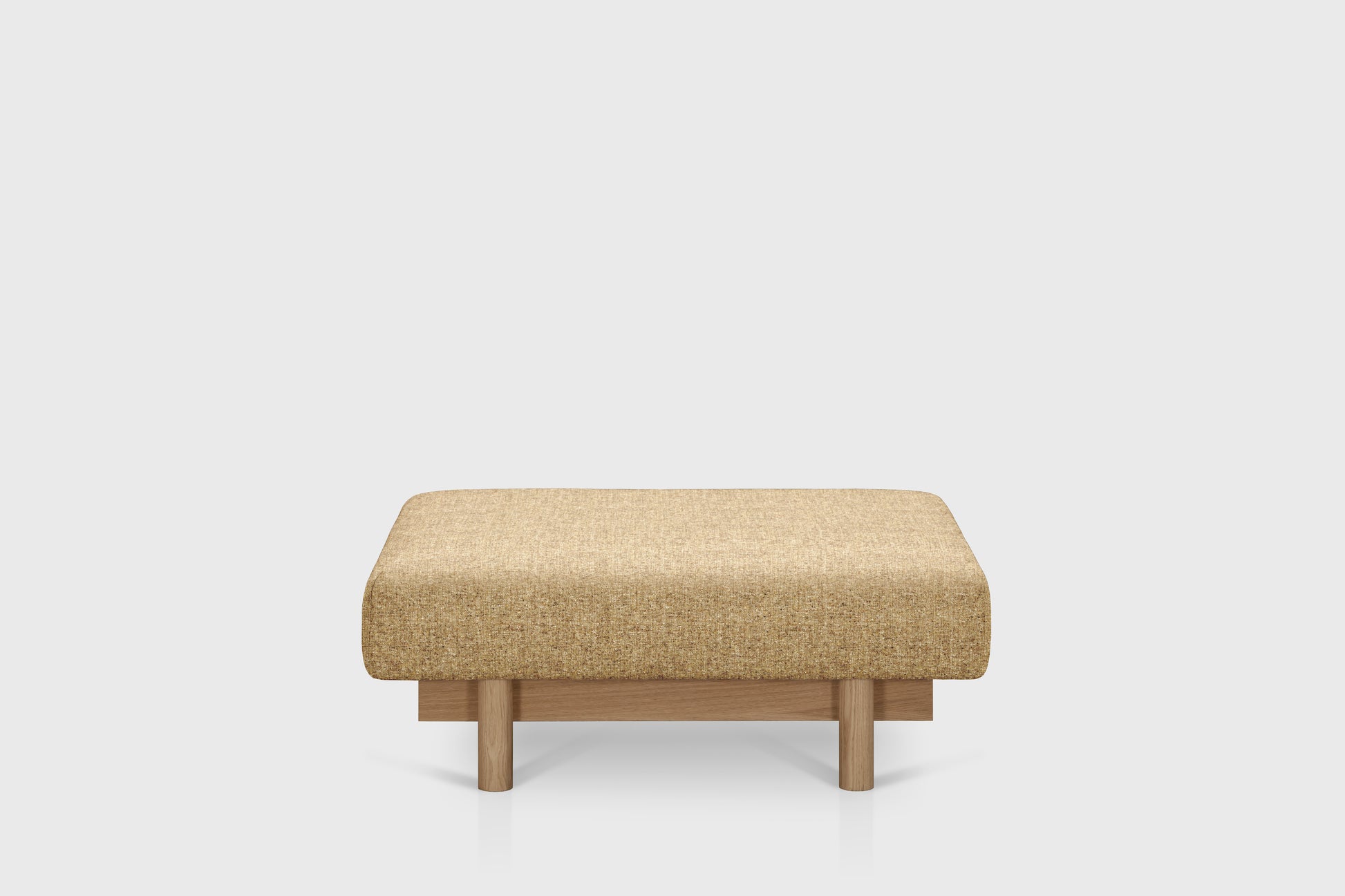Introducing the Alchemist Pouf made of Recycled Wool - Decoma Granola. Meticulously crafted and designed with clean lines, this eye-catching piece is composed of an oak-veneered frame and soft, sculpted pillows.