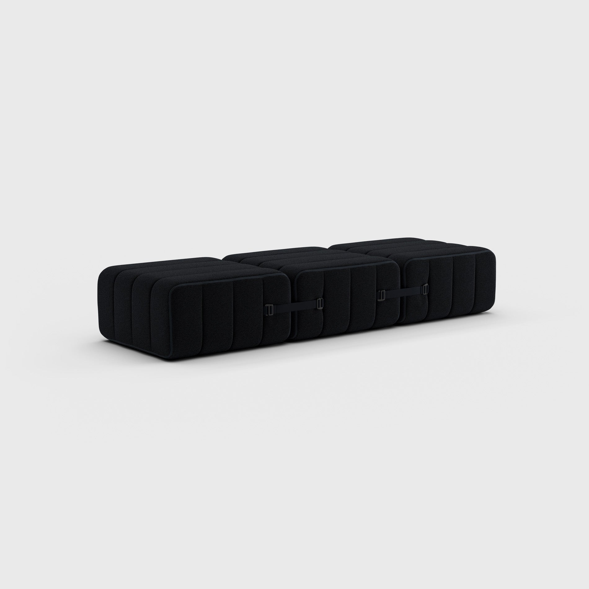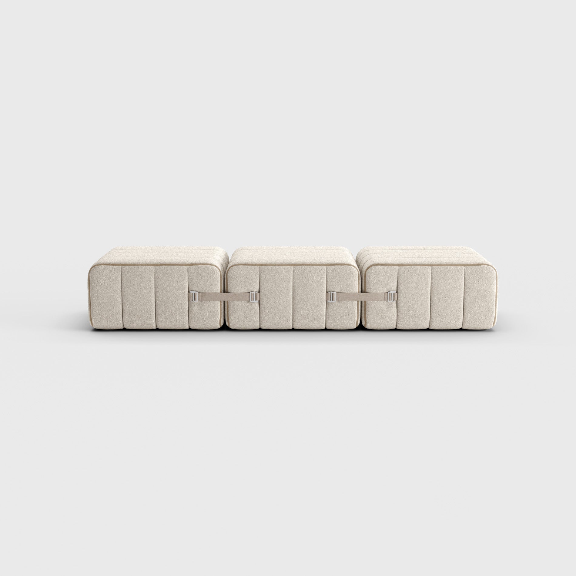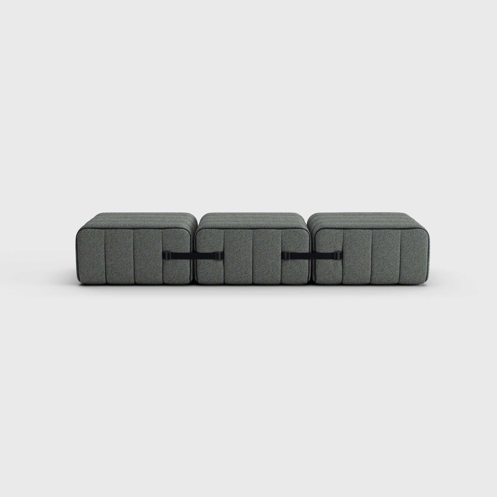 Three Curt modules are already enough for playing around. A small asymmetrical armchair, a bench, a lounger, or three individual stools. With three different modules, Curt does not yet become a sofa system, but it is modular and flexible.
