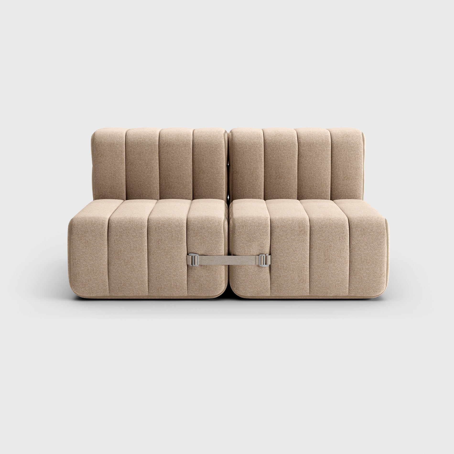With four modules of the Curt sofa system, modularity really takes off. More than 20 different arrangements are possible. Sofa, lounger, chaise longue, bench, two armchairs, seating island, four stools, love seat, to name just a few.