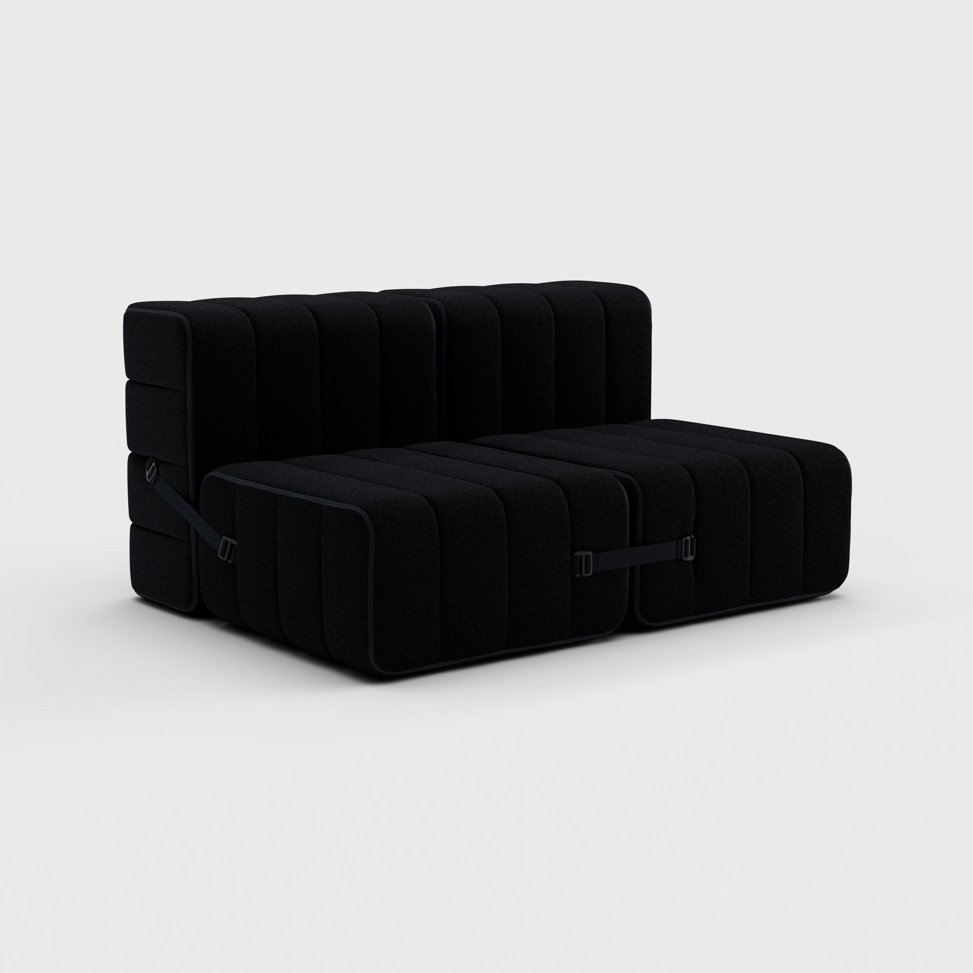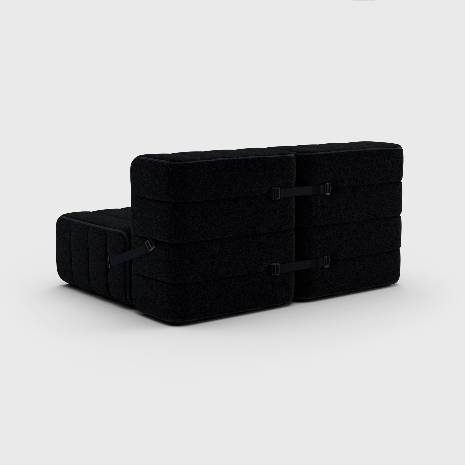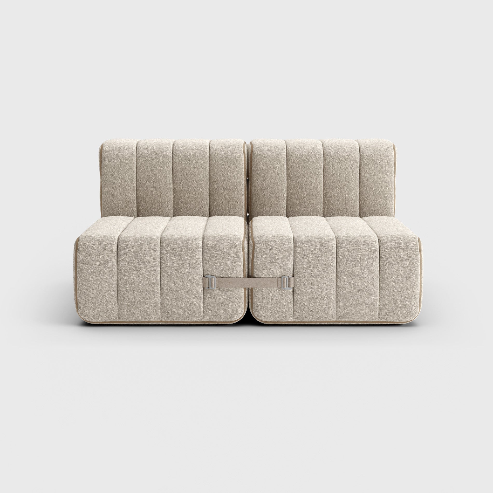 With four modules of the Curt sofa system, modularity really takes off. More than 20 different arrangements are possible. Sofa, lounger, chaise longue, bench, two armchairs, seating island, four stools, love seat, to name just a few.