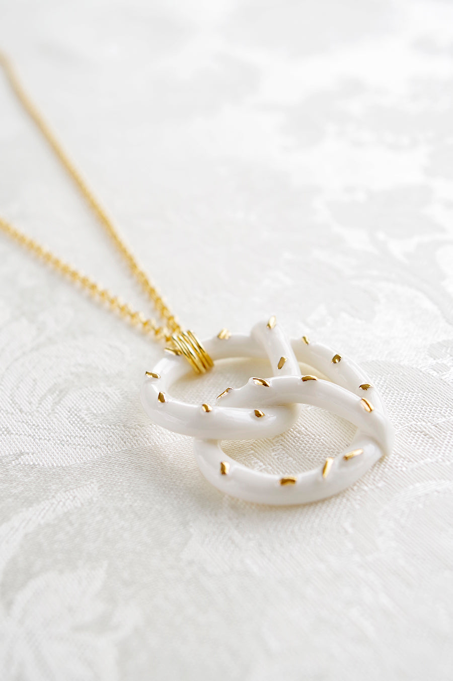 Golden Salted Porcelain Pretzel Pendant Necklace