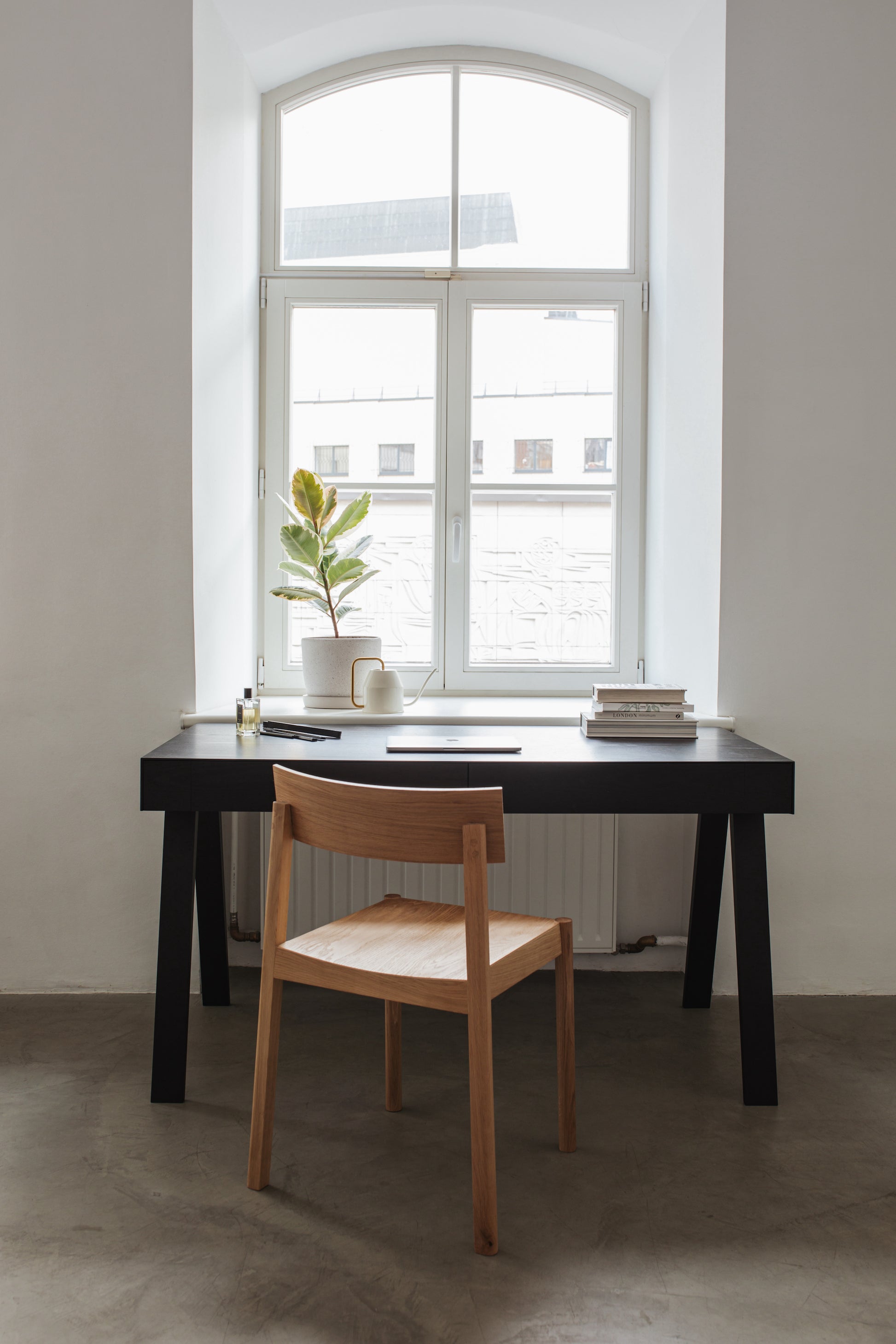 The unusual name of desk 4.9 has a story to tell: it reflects designer Marius Valaitis's desire to play with the concepts of perfection vs. flaw. For that it’s almost five, missing just a tiny bit. This translates in the angles of the desktop, which, at its end, has a “crack”, a slit not just for storage, but also to bring closure to the desk’s core idea.