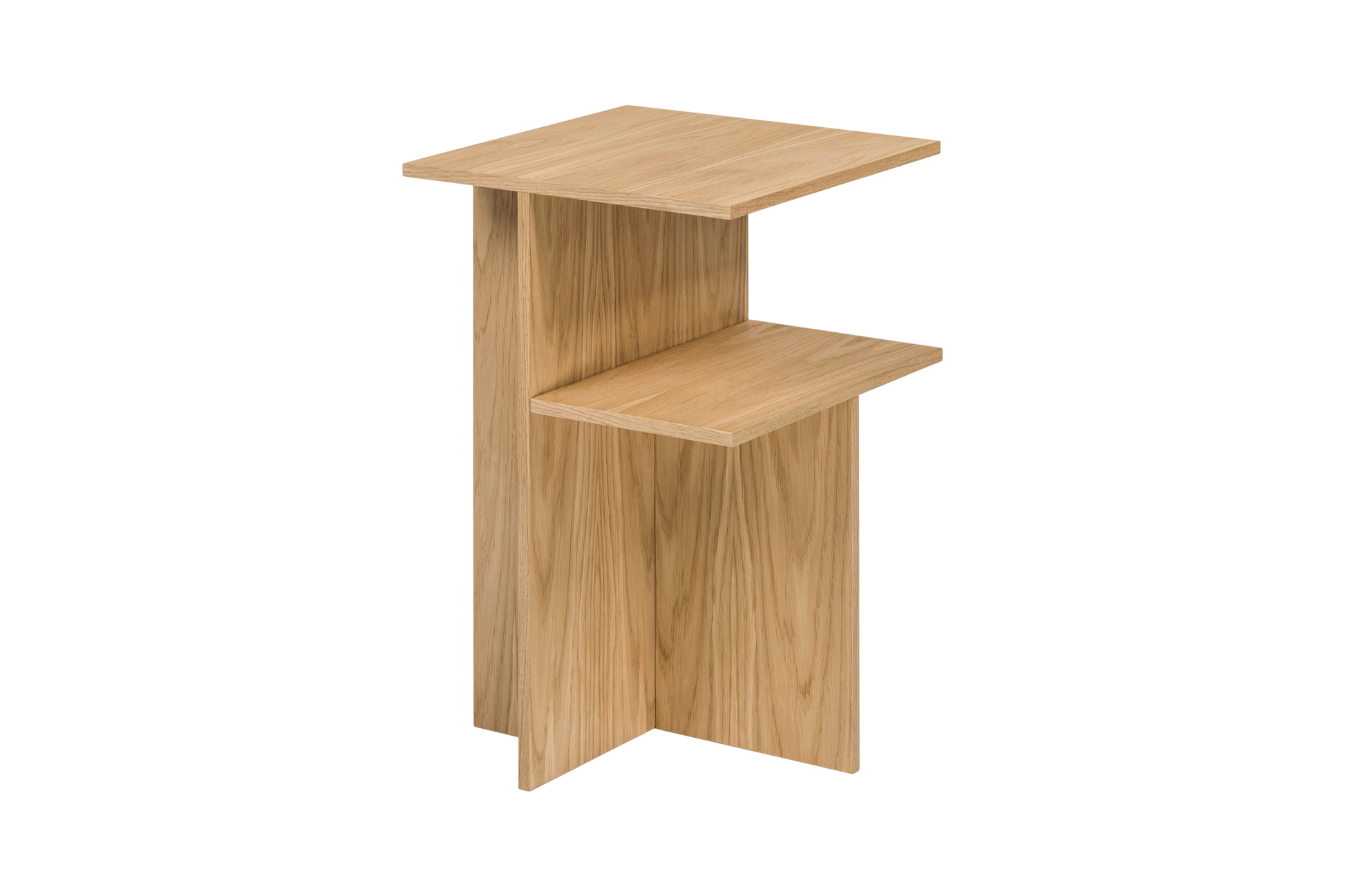 SOMEFANCYNAME.COM introduces Atik Bedside Table Oak – an essential side table with a bold, asymmetrical design and two convenient shelves. It fits perfectly next to a bed or sofa, adding a unique sophistication to any interior. Its eye-catching design and remarkable practicality make it an impressive statement piece!