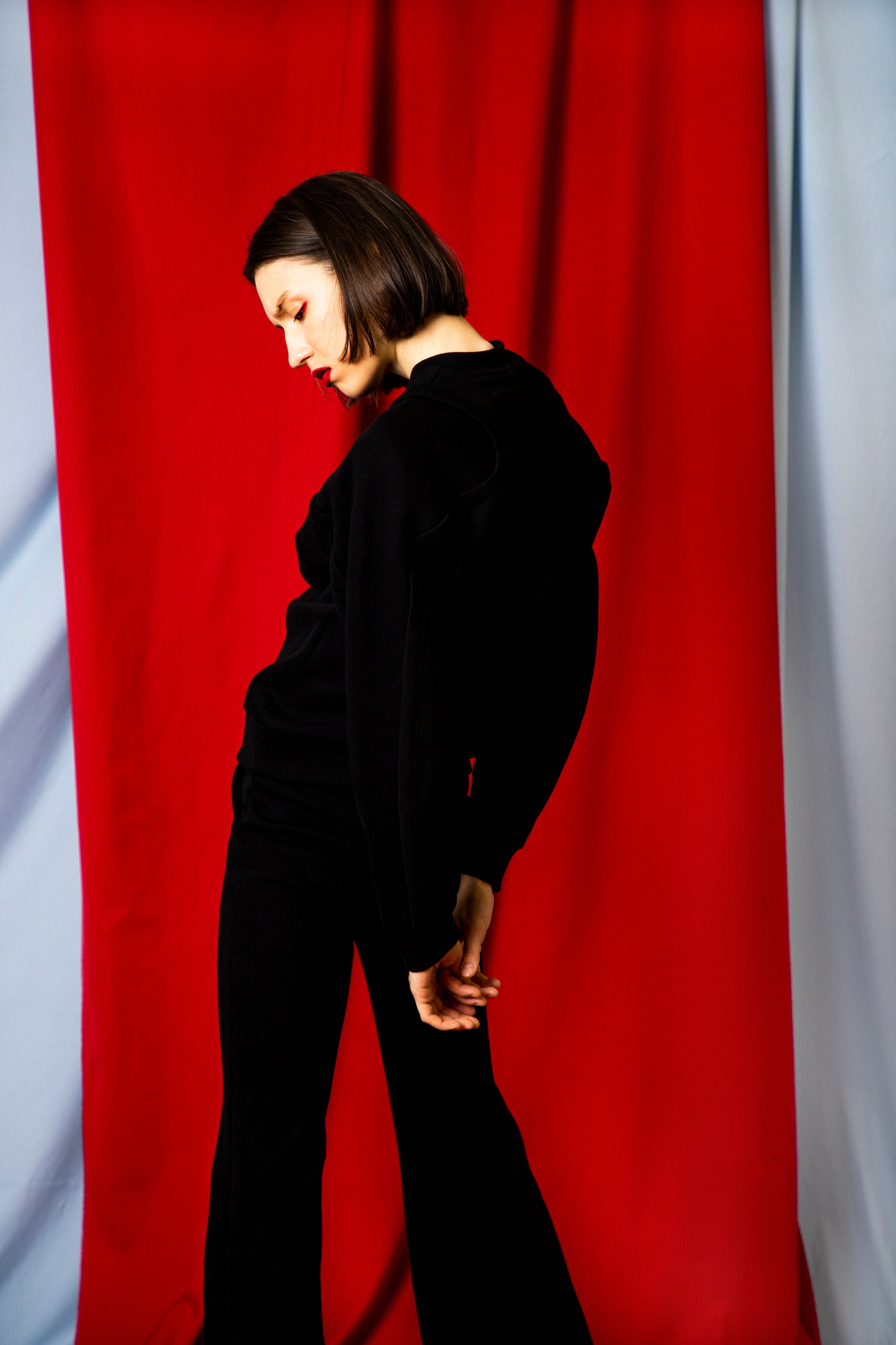 All of our garments are designed, cut, and sewn in-house, completely under one roof. Our current production time for one to three-item orders is 5-10 working days.