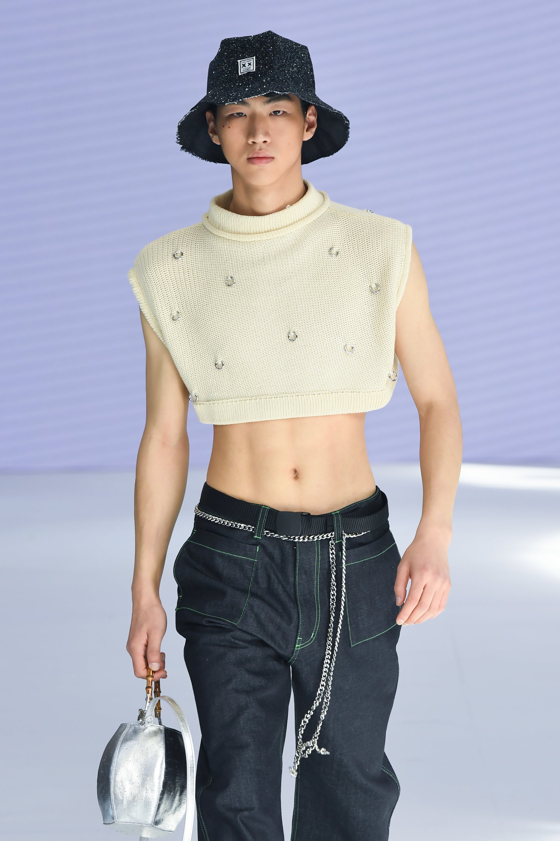 BRENDEL Mini Bucket Cork Bag belongs to KI LEE’s ongoing collaboration with the menswear brand "The STOLEN GARMENT." It was presented during the Seoul Fashion Week and features an invisible magnetic closure, adjustable/detachable strap and a full lining.