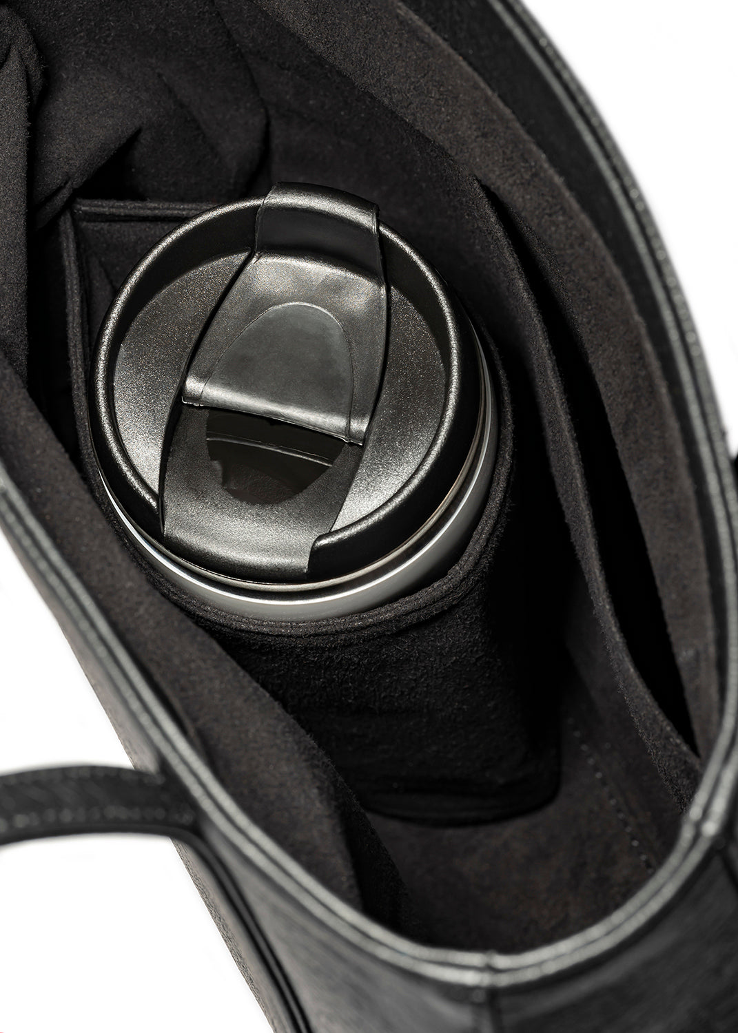 Campa Tumbler Tote Bag combines KI LEE’s minimalistic aesthetics with practical design solutions to today’s everyday life. The medium-sized tote bag is wide and tall enough to hold all your necessities. It features a special tumbler holder inside the main compartment that provides stable storage of the most commonly used tumblers in the market.