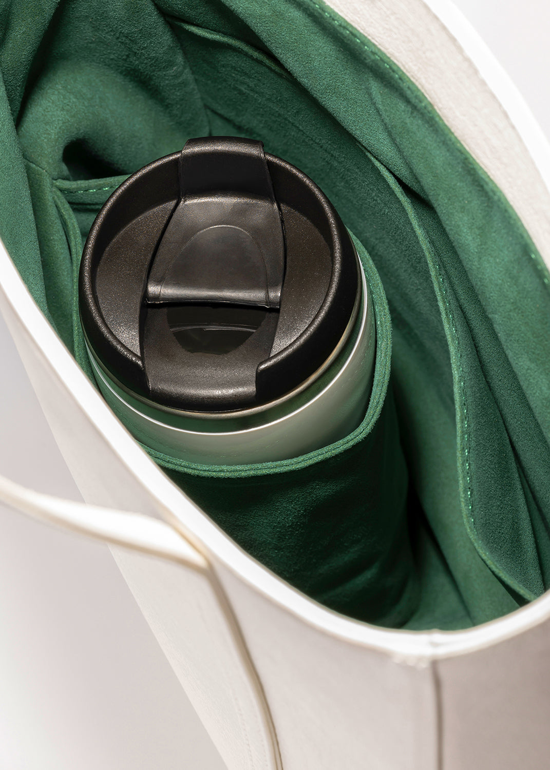 Campa Tumbler Tote Bag is made of an innovative vegan material - haunji - a mulberry-bast-and-cotton vegan leather. Thanks to the natural characteristics of mulberry bast fibre, Hanji is 99.9% anti-bacterial, durable, lightweight, breathable, water-repellent, and bio-degradable.