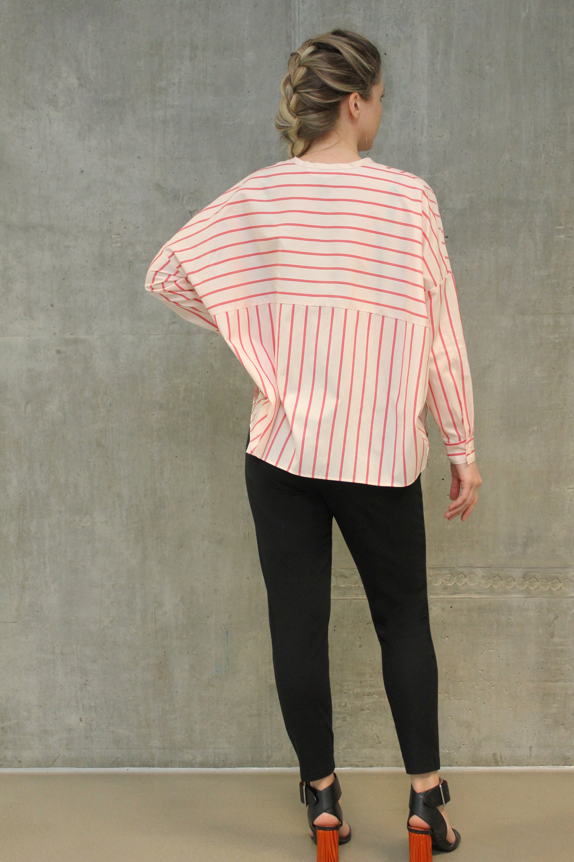 This striped L/S shirt features loose fit design, round neck and front buttons. Perfect for wearing it to work or meeting out with your friends.