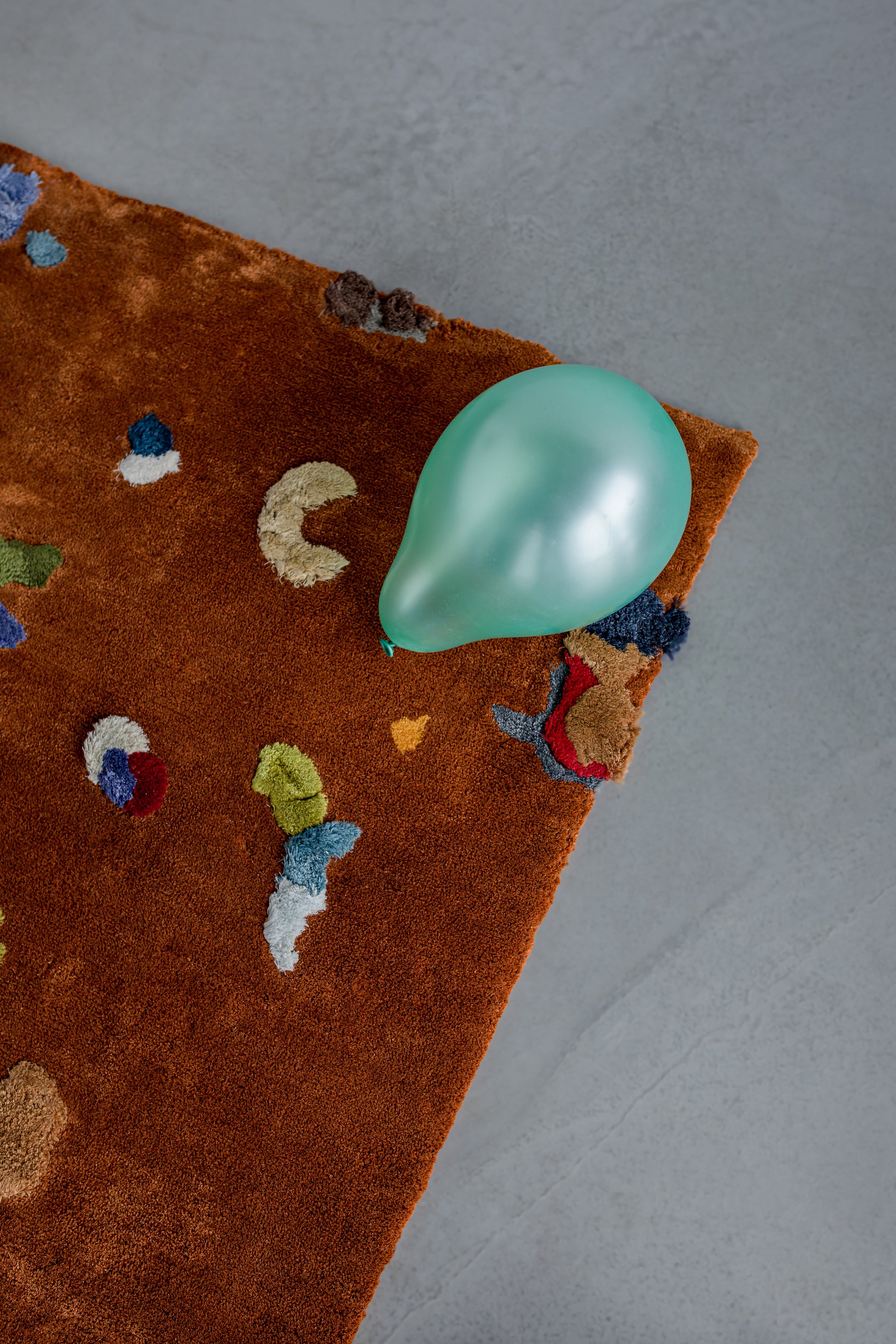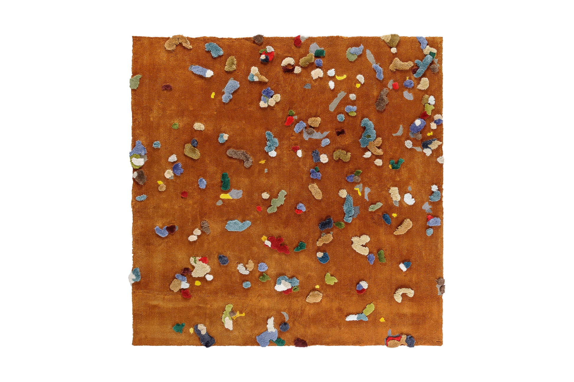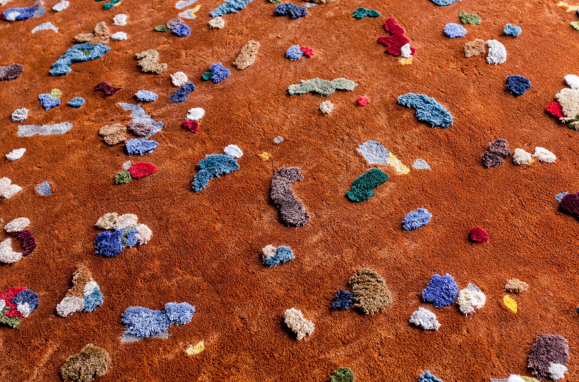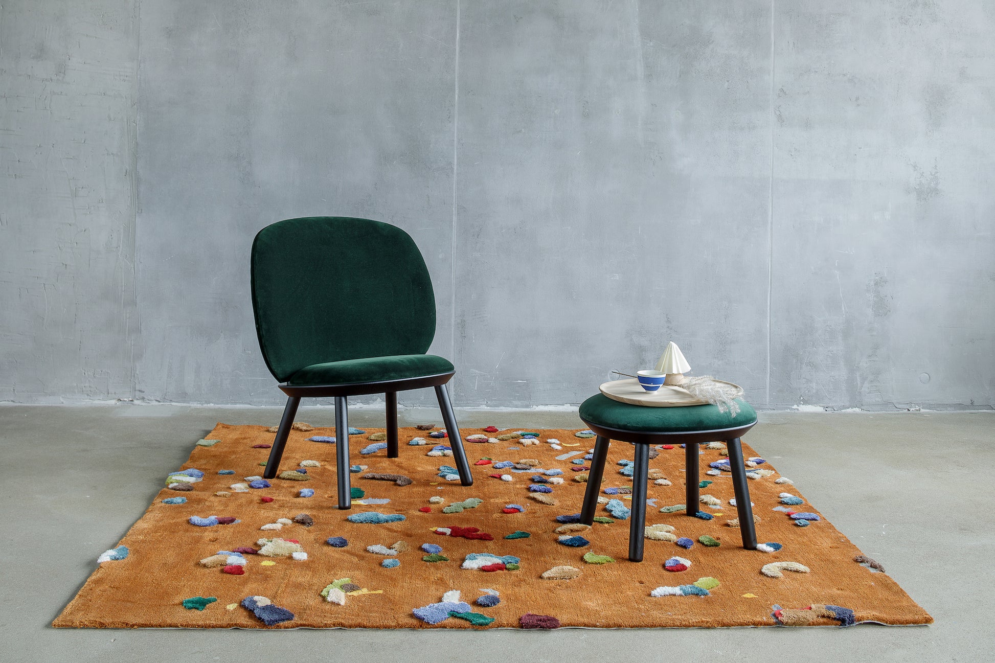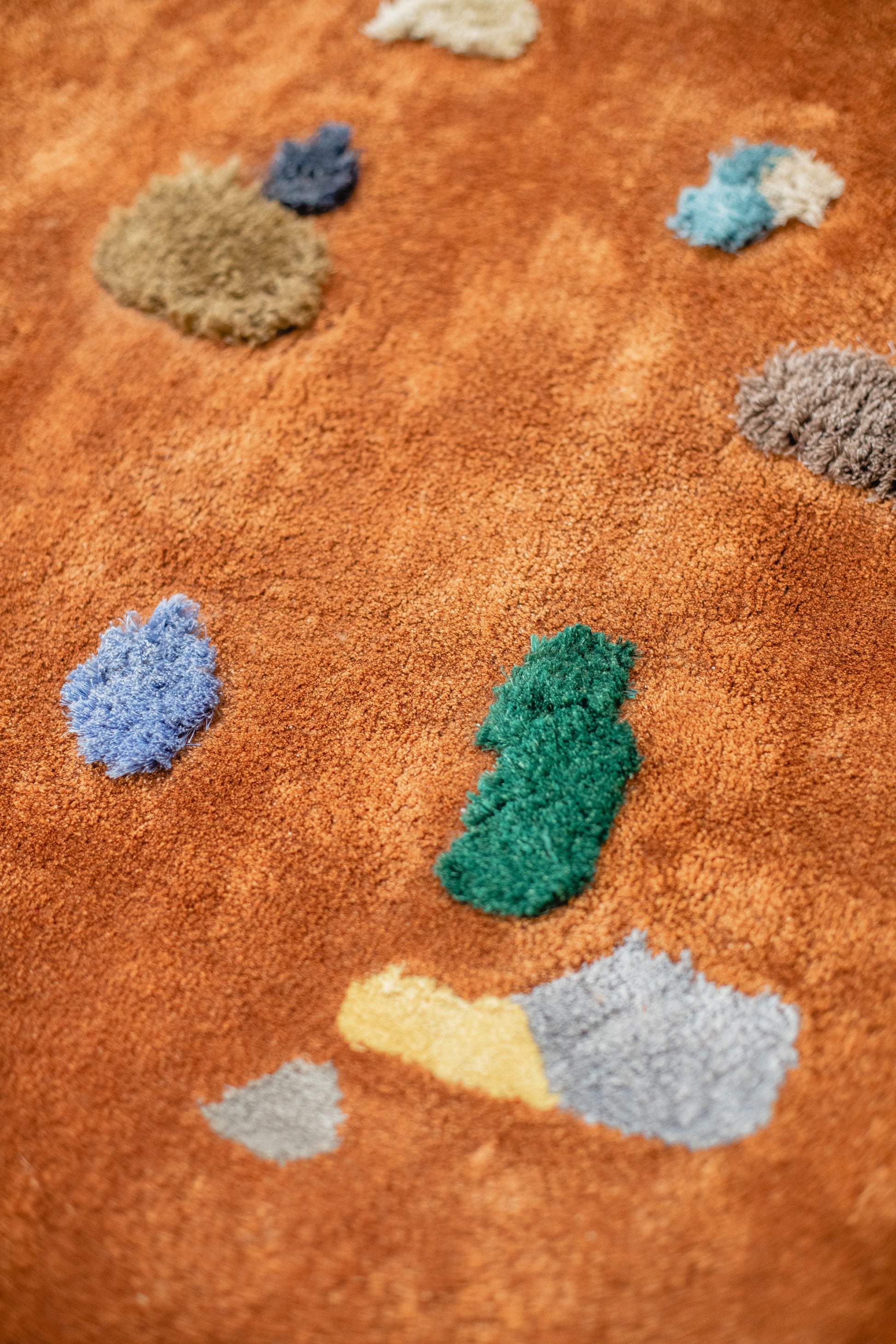 The rug is made out of the industry’s leftover yarn. The base of this linen rug is hand-tufted with one-color yarns. The weaver selects the rest of the details from the deadstock leftovers. Every single rug is therefore uniquely colored and made from 100% linen that has hypoallergenic features.