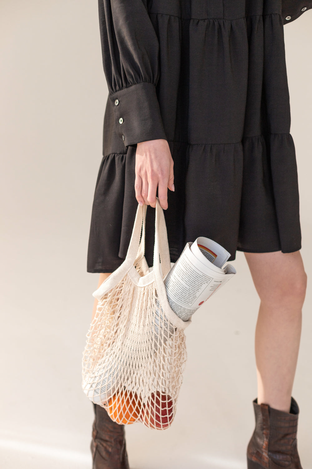 Wear it as it is or with a belt. The dress is made of airy and flowing viscose, dark gray mother-of-pearl buttons.