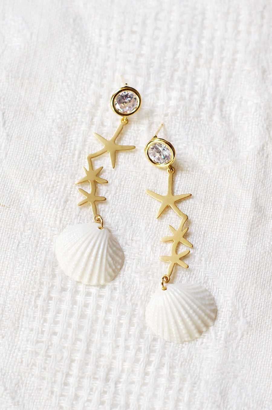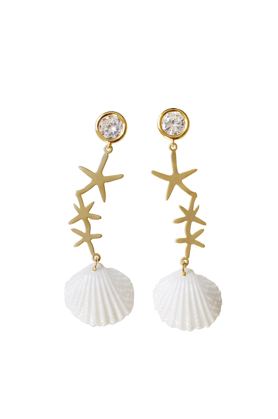 Crystal Star Porcelain Seashell Earrings