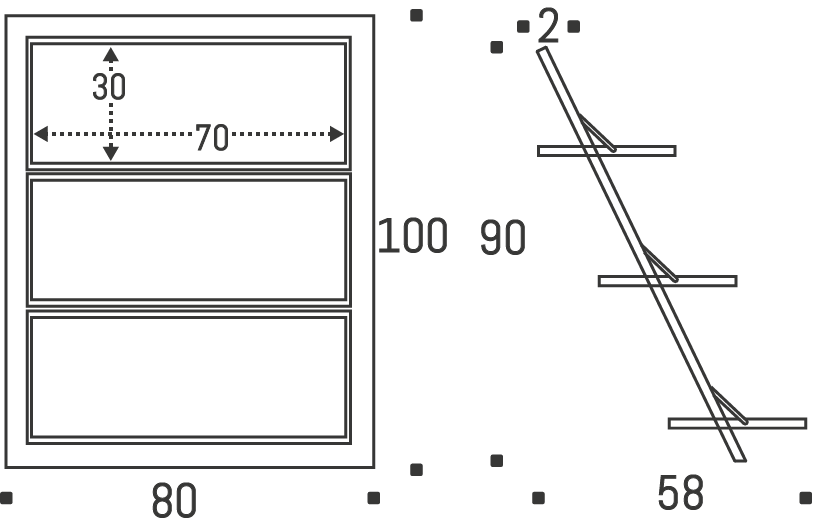 Working surface: 70 x 30 cm