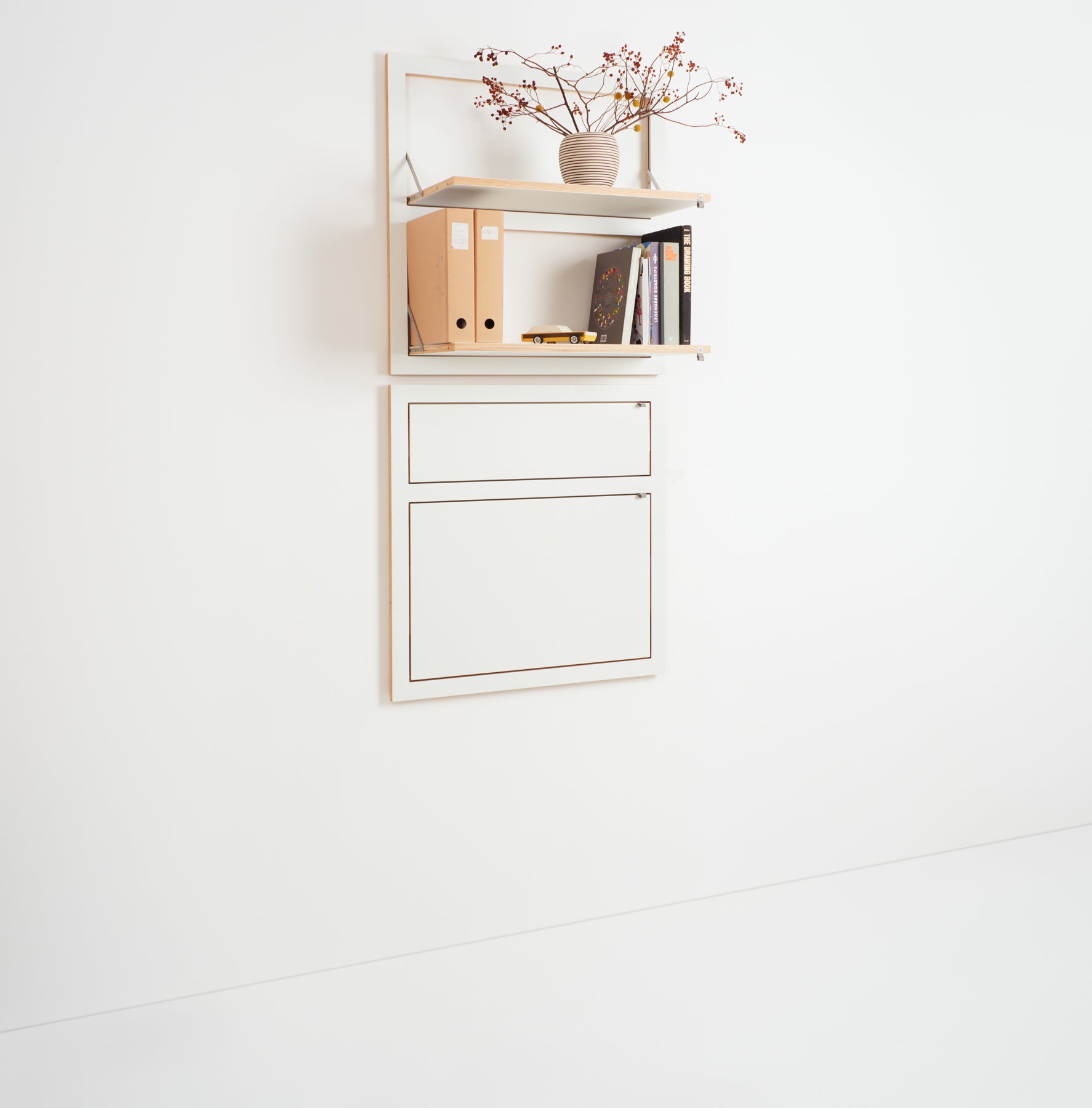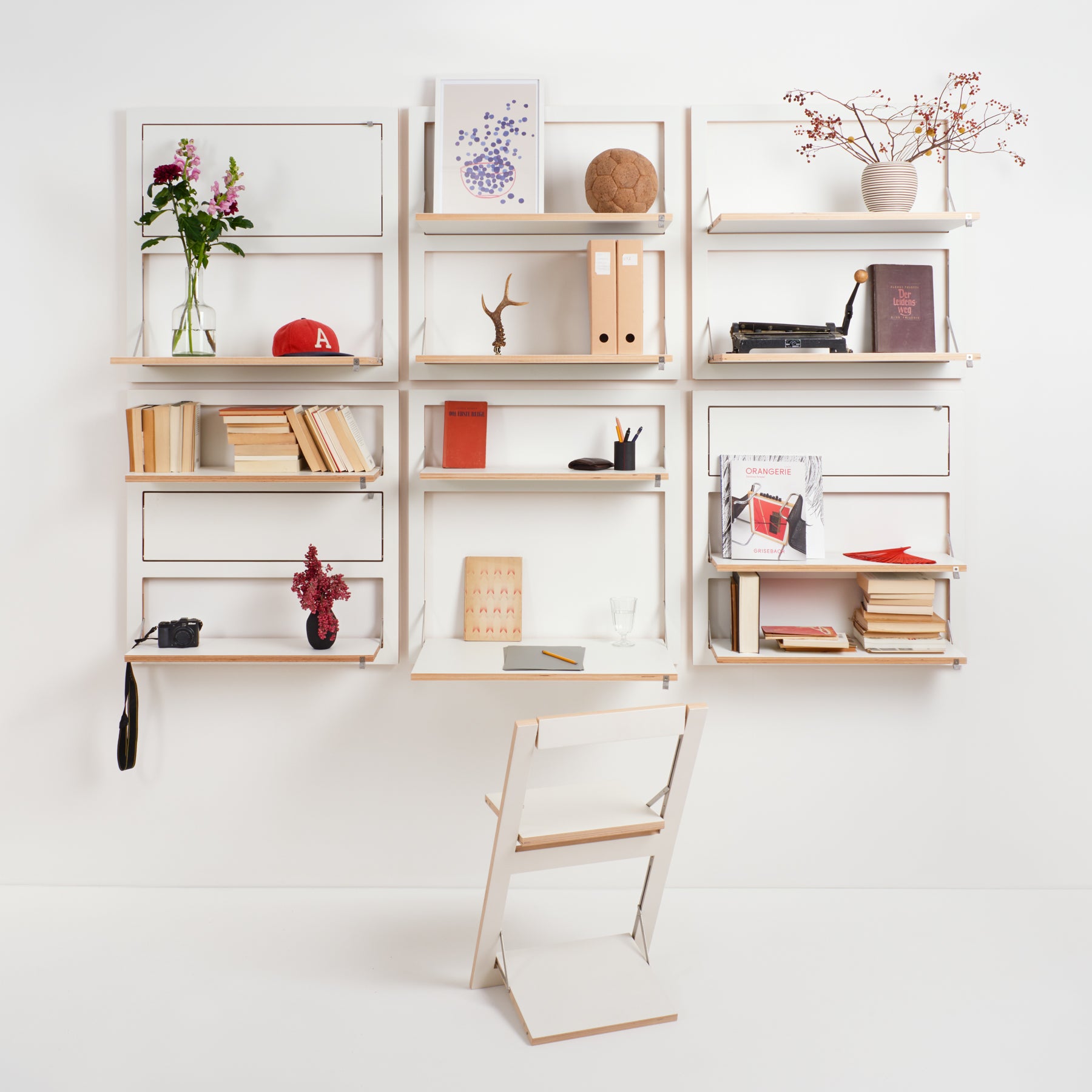 The most complete home office among the Fläpps wall desks. Folded twice brings double the fun at work.