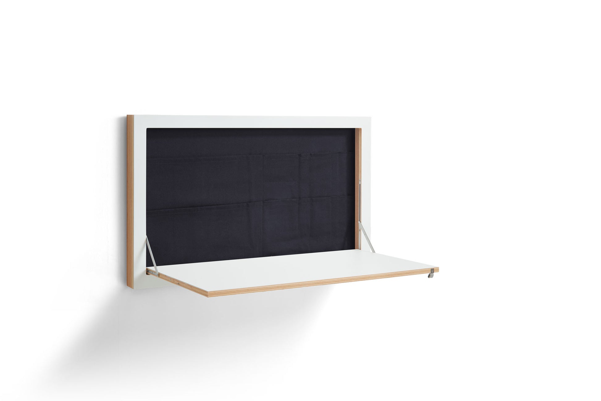 A lot of work requires a lot of space. But only until it is done. That's why we now have the large Fläpps Secretary (100x60-1). After work, this fully-grown desk folds back up so discretely against the wall that you can no longer see anything of your work.