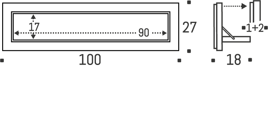 Closed: 100 x 27 x 2 cm + 1 cm wall mount