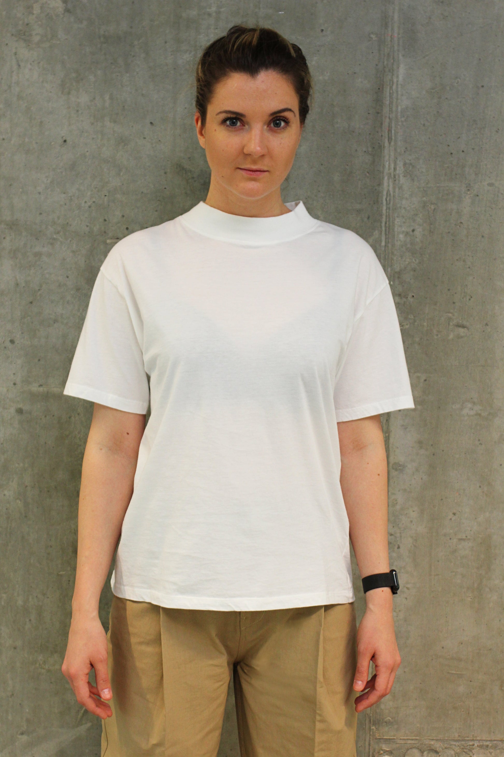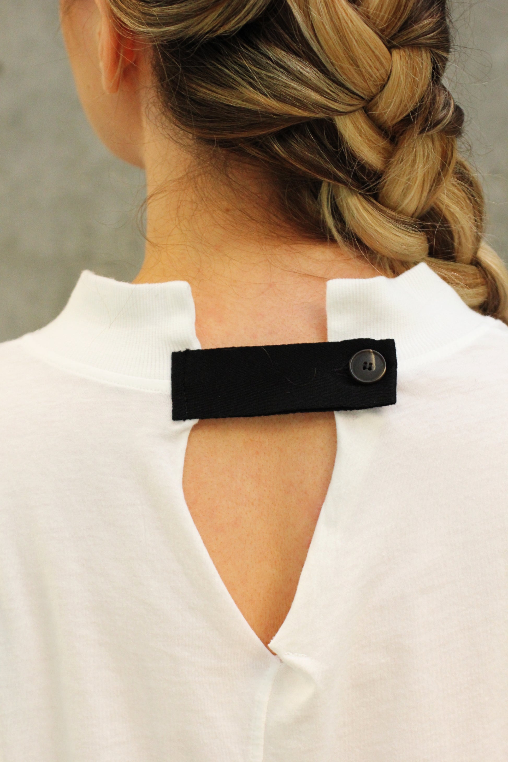This Tela short turtleneck t-shirt features loose fit and a button detail on the back.