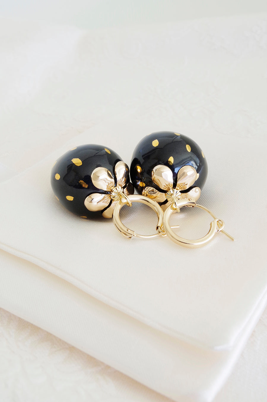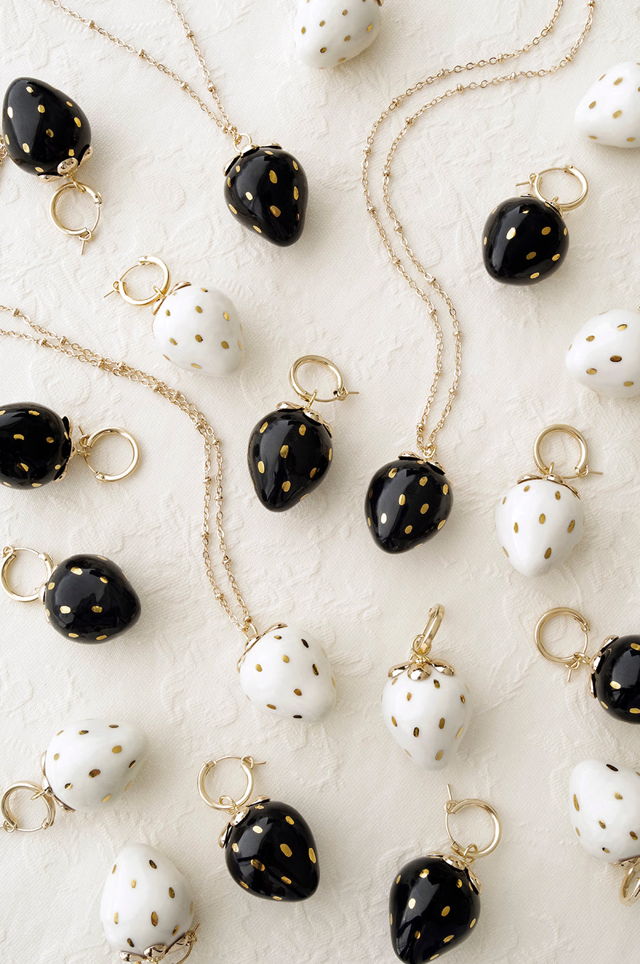 **To prevent the strawberry drops from popping out from the open hoop, please hold them securely when fixing the earrings.