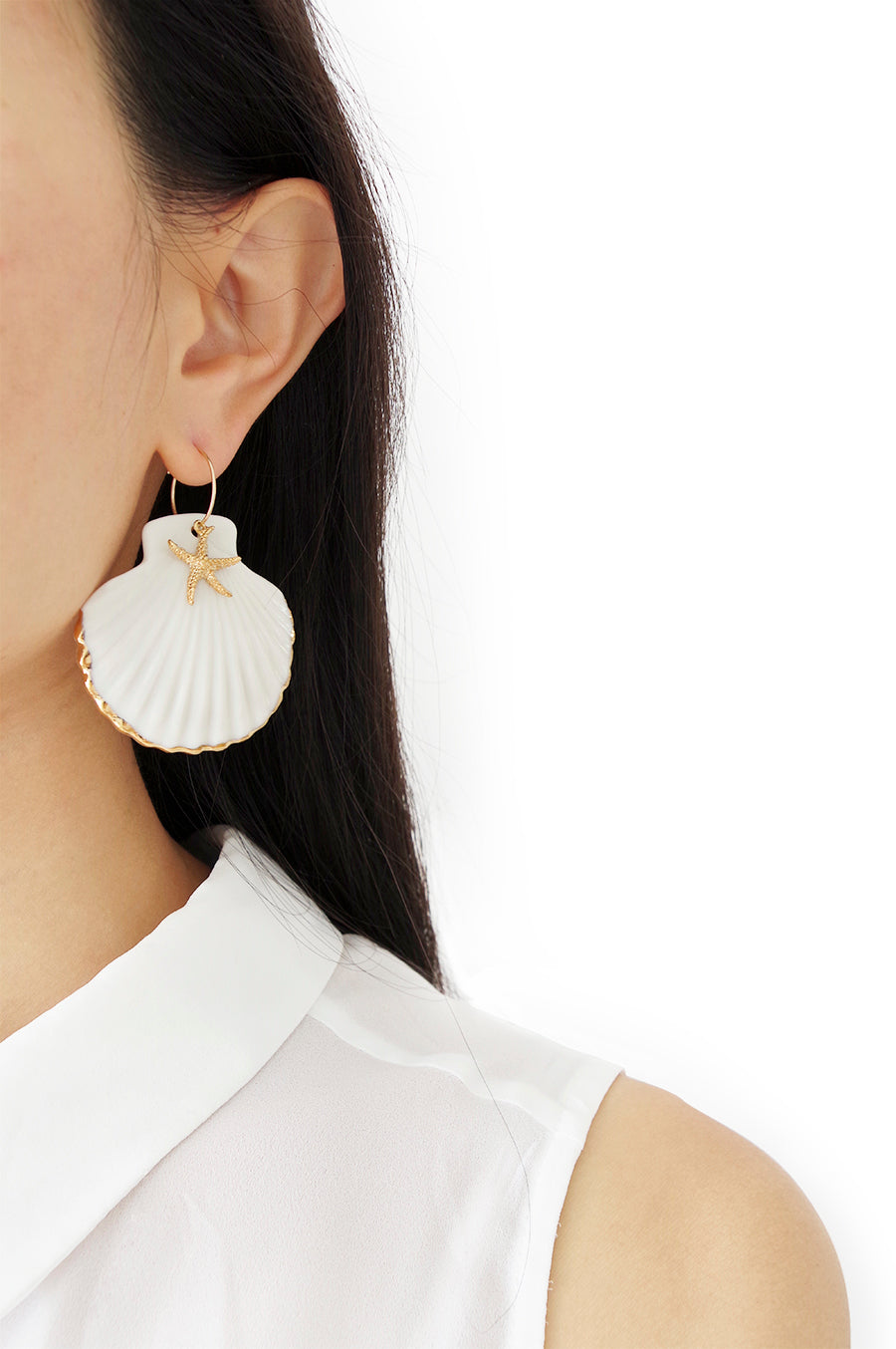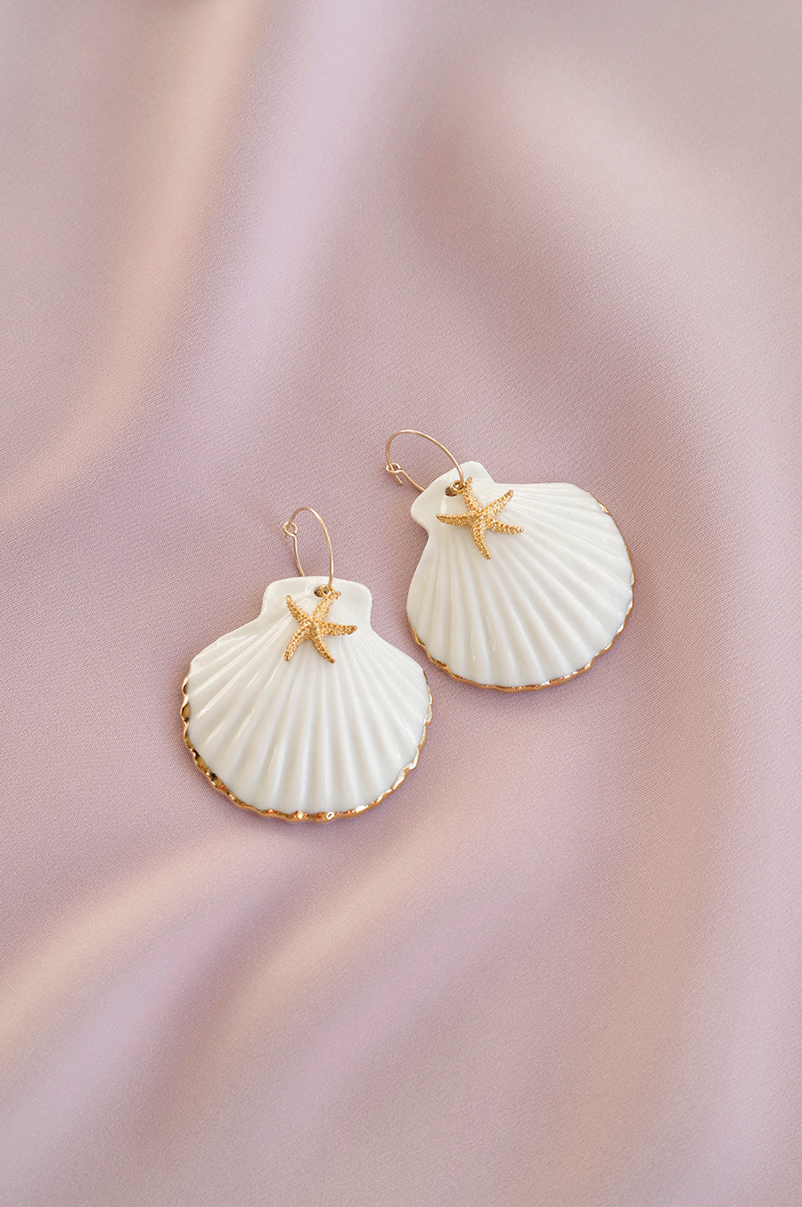 Golden Edge Clam Shell With Starfish Hoop Earrings