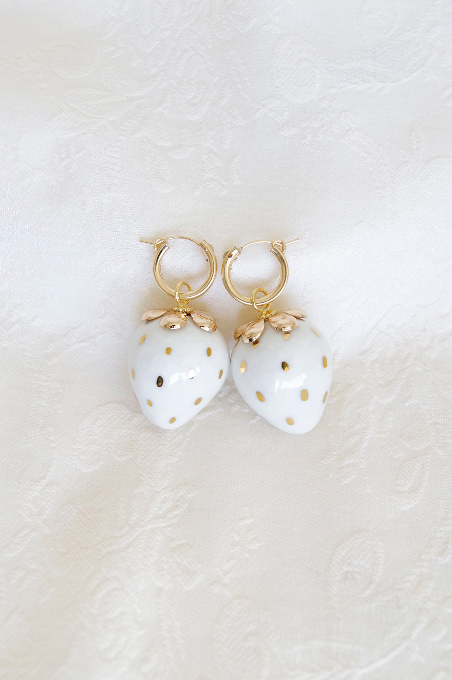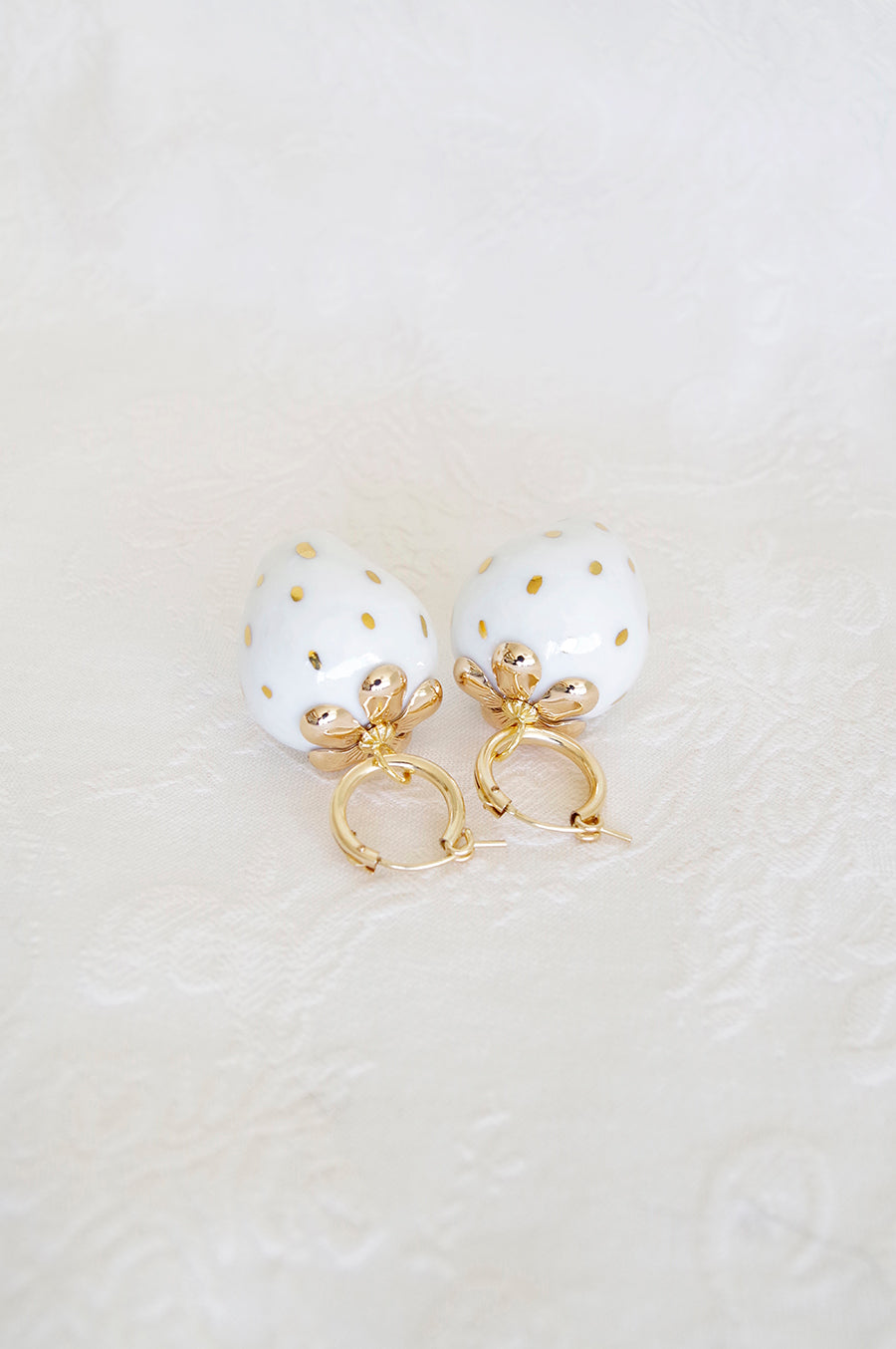 **To prevent the strawberry drops from popping out from the open hoop, please hold them securely when fixing the earrings.