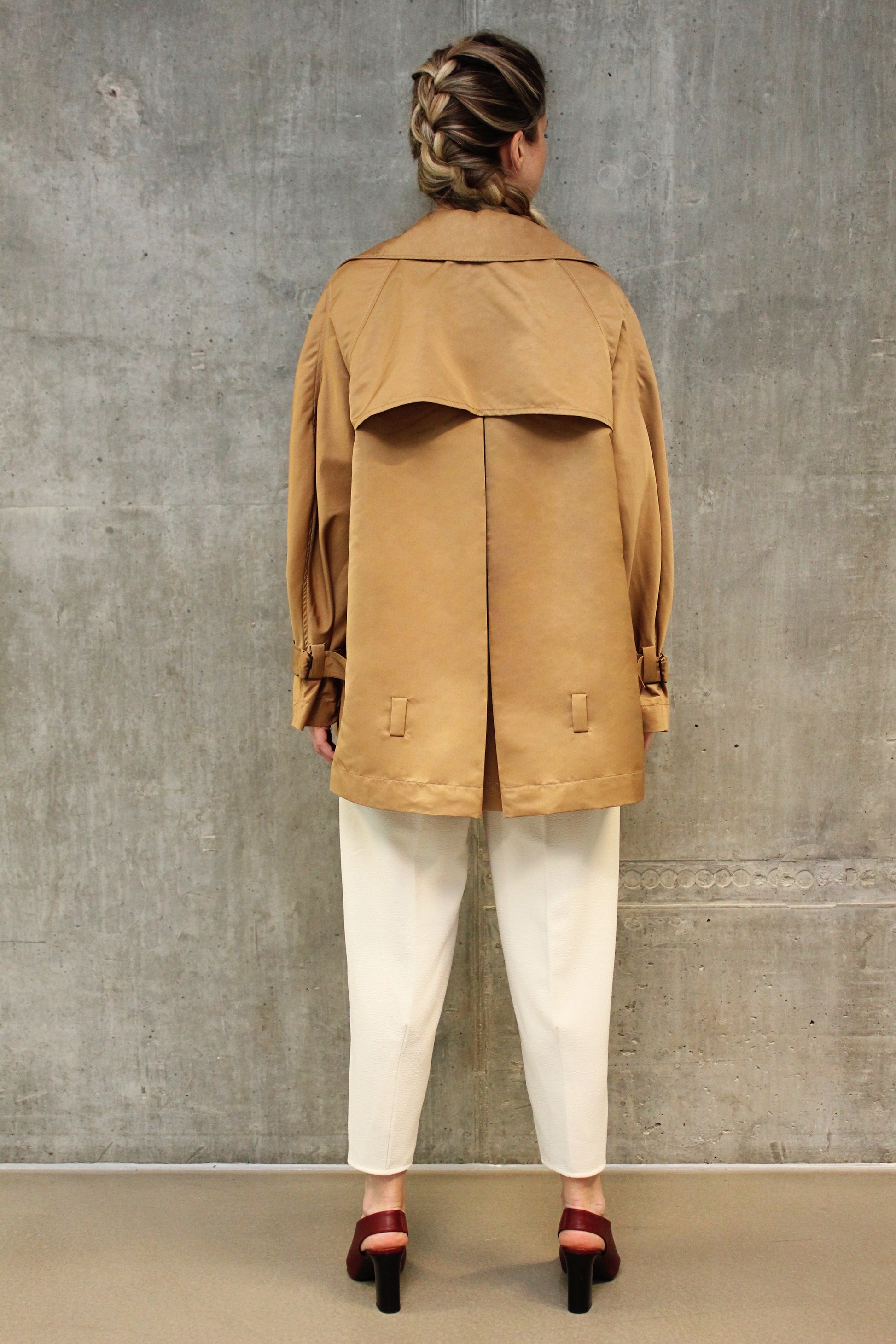 This Waterproof Light Jacket from an Italian brand features loose fitting, side pockets, lining, a button on the back and big collars. Made in Italy, this jacket has sleeves with details.