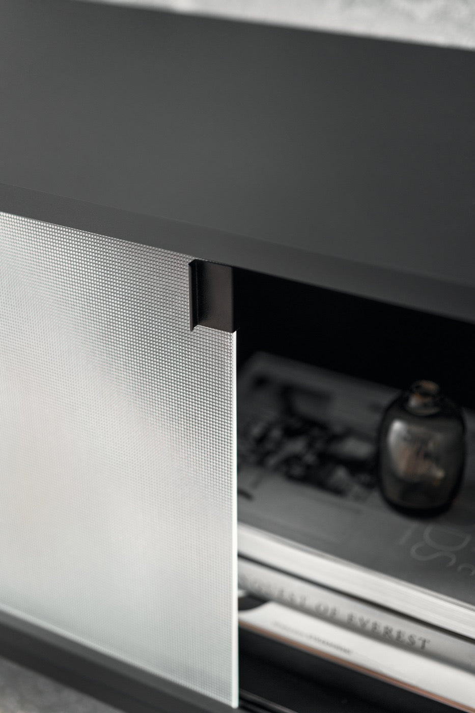 Met TV Stand is equipped with cable management holes and smoothly sliding doors giving you easy access to your home accessories.