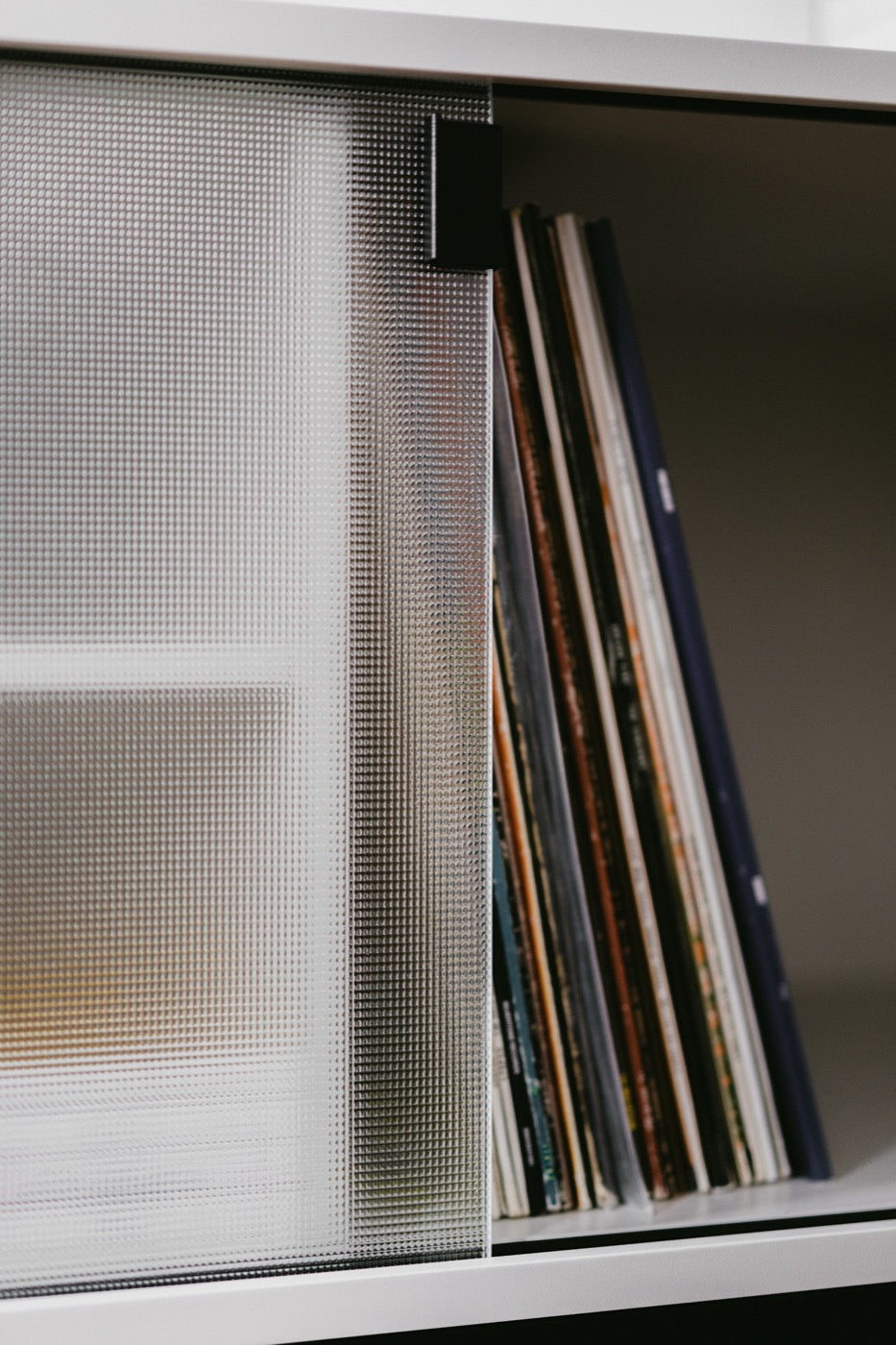 Our structured glass fronts must only be cleaned using lukewarm water and a mild detergent like soap and then wiped dry.
