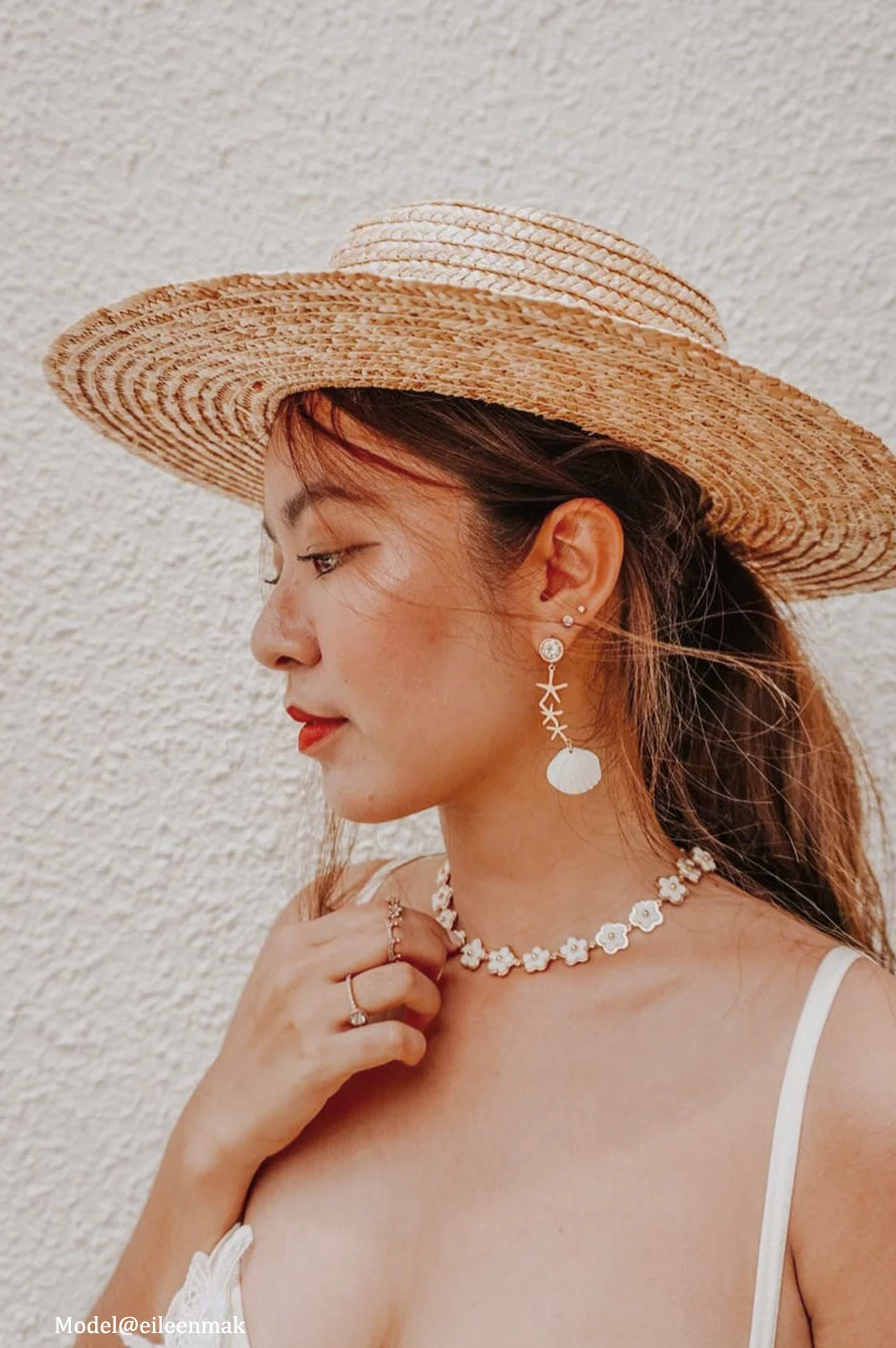 The necklace also features gold-plated bases, adding a touch of sophistication to the design. Whether you're pairing it with a relaxed holiday outfit or an elegant evening dress, this necklace is sure to make a statement and elevate your look.