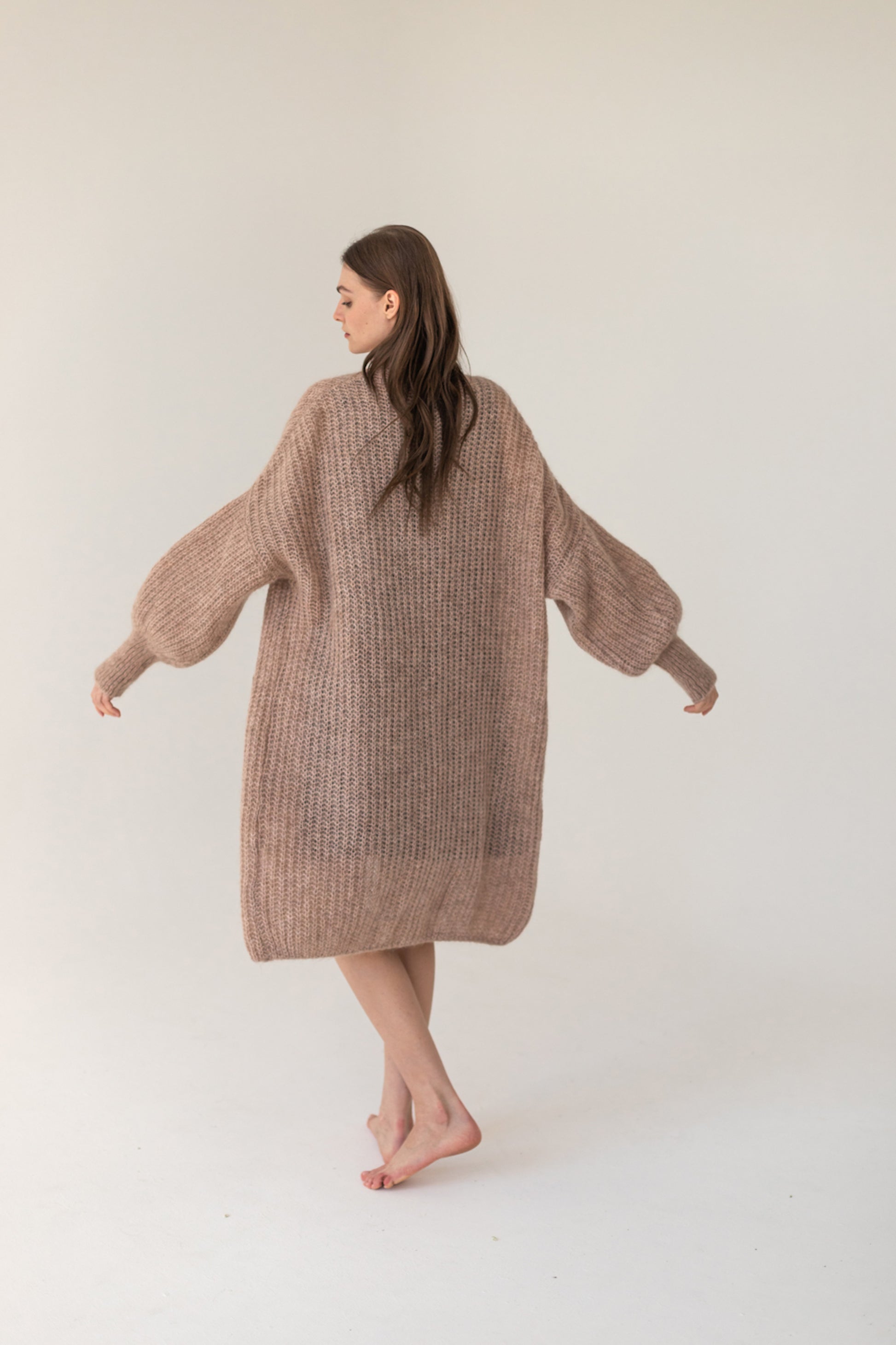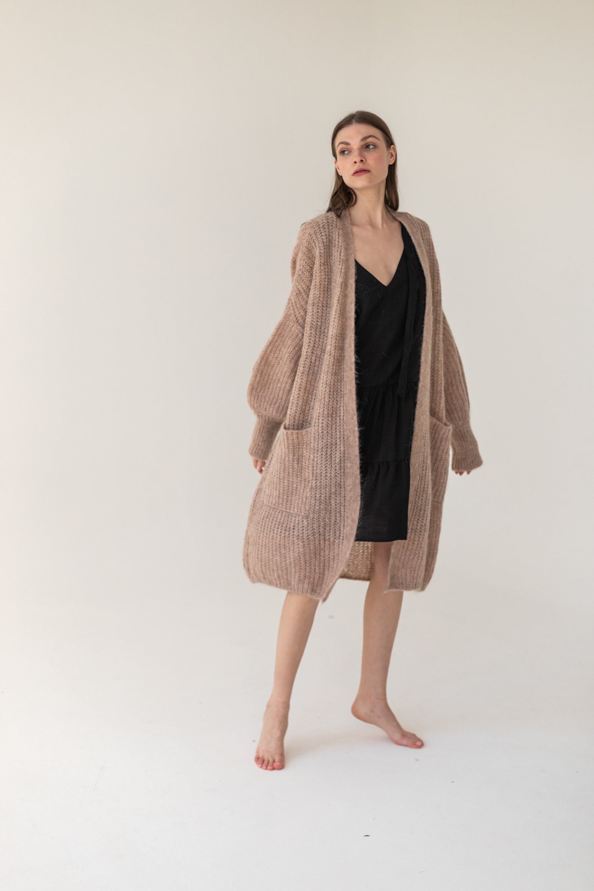 SOMEFANCYNAME.COM invites you to experience the Mohair Alpaca Wool Cardigan - Beige! Locally made with extremely soft kid mohair yarn and luxe superfine alpaca, this long jumper features wrap-around styling, kimono sleeves with a dropped shoulder for maximum mobility, and a ribbed cuff buff sleeve for a touch of style.