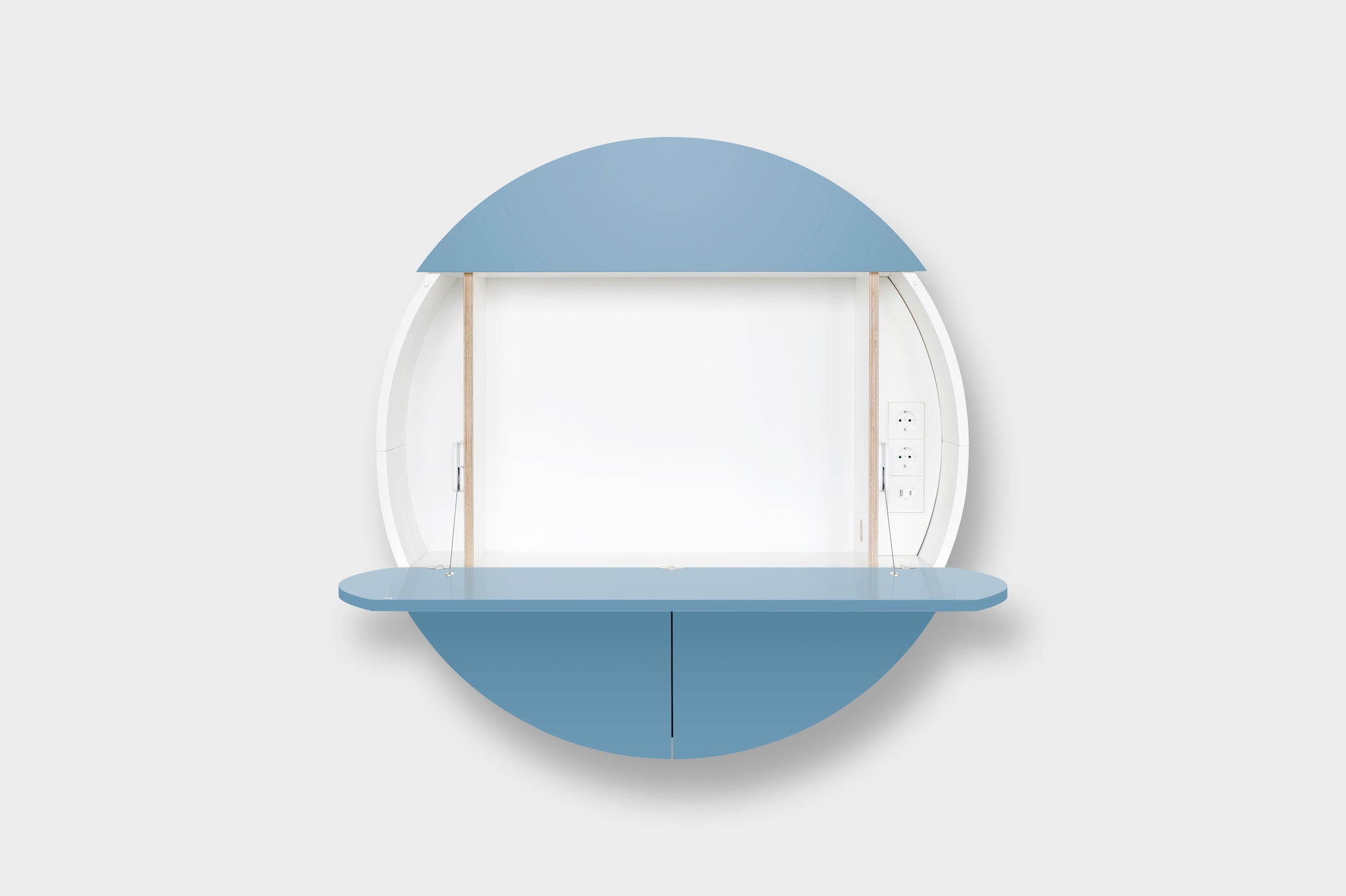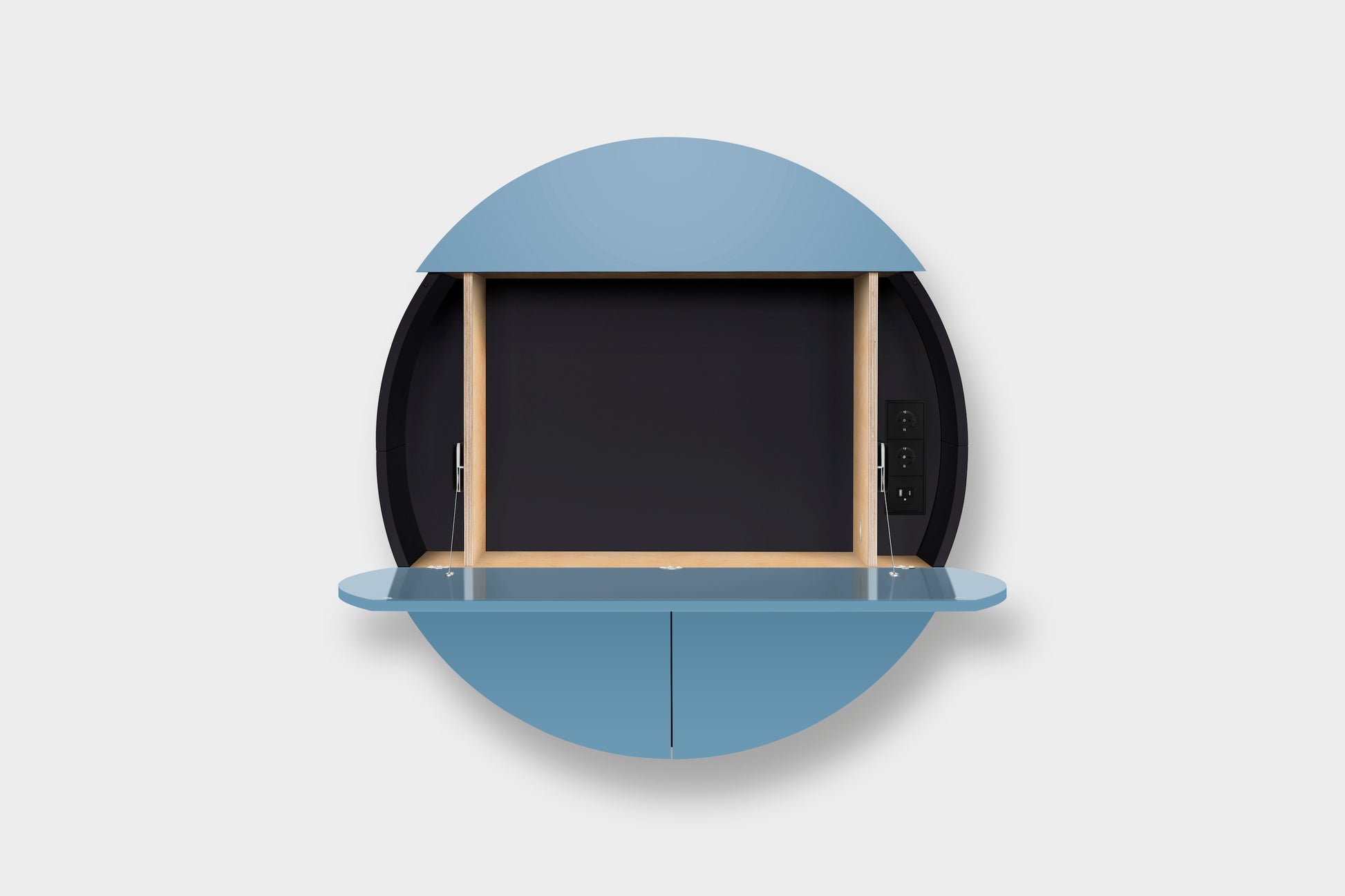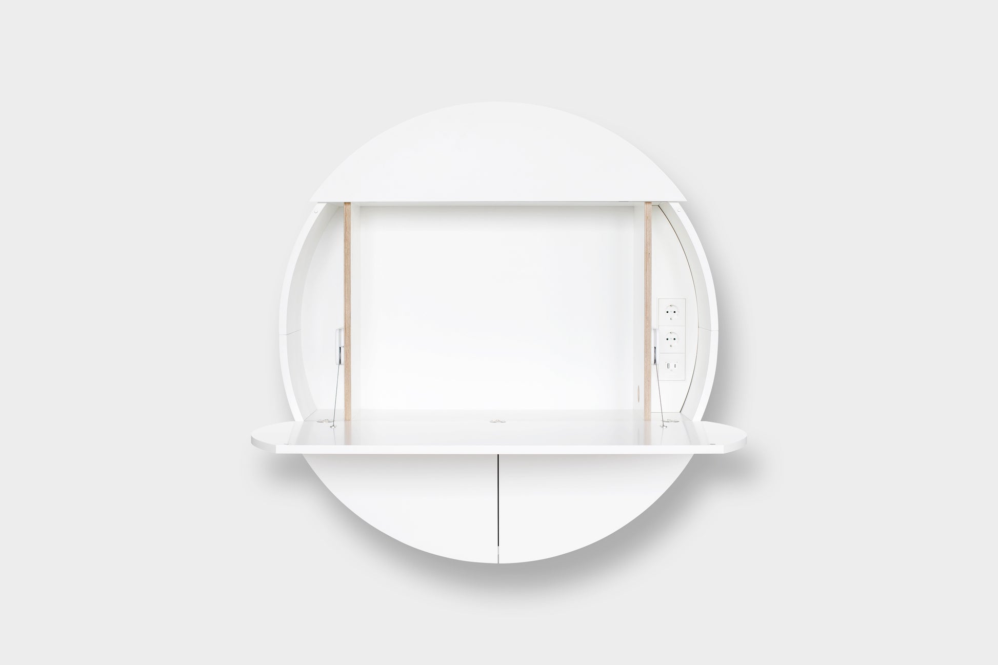 From now on, Multifunctional Pill Extra is a perfect workplace that fits a 27" screen, be it your iMac, or any other screen. It also has a functional tabletop and JUNG electric sockets. Moreover, secret storage compartments help quickly hide work clutter, making this piece a must for smaller spaces.