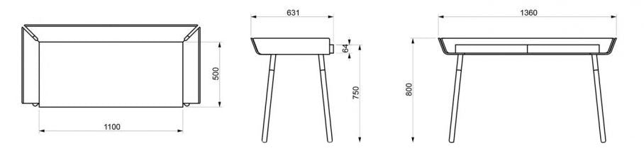 W1360 x D630 x H780/740 mm, 35 kg