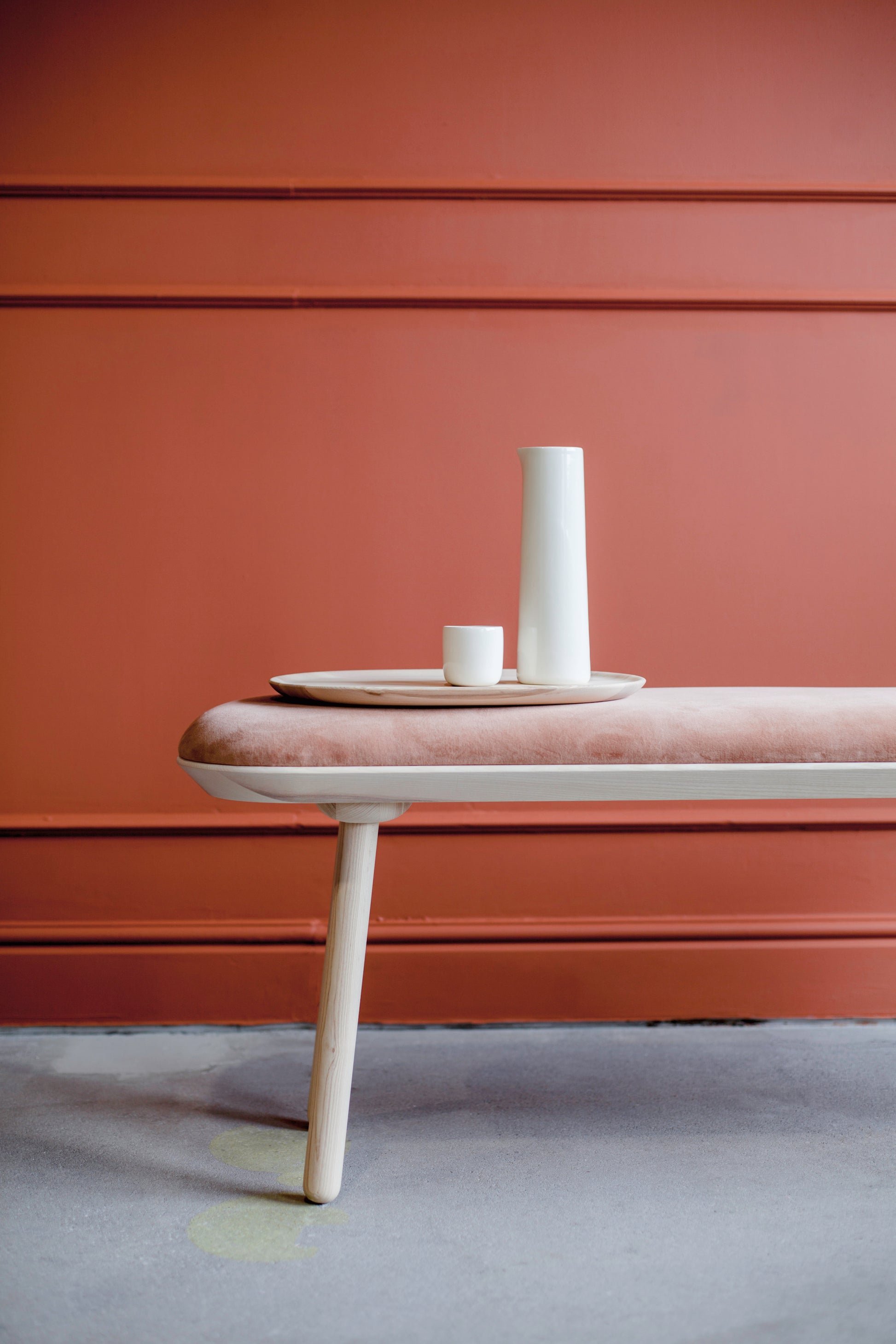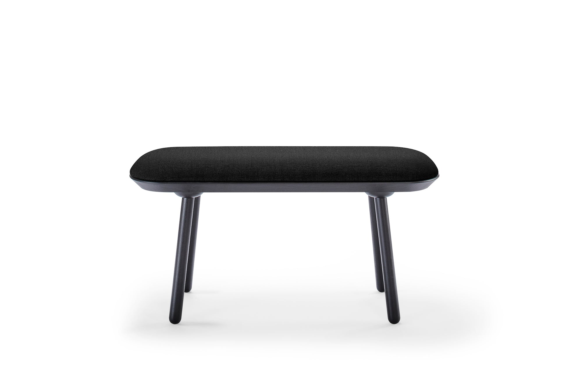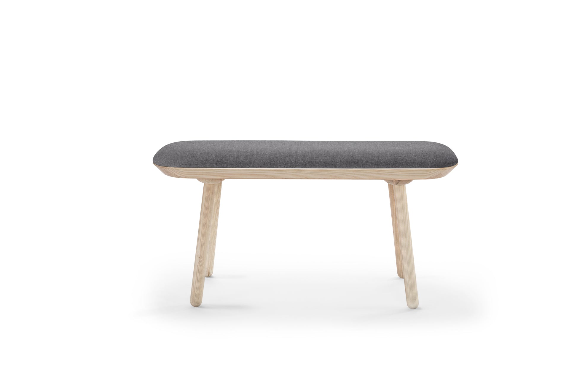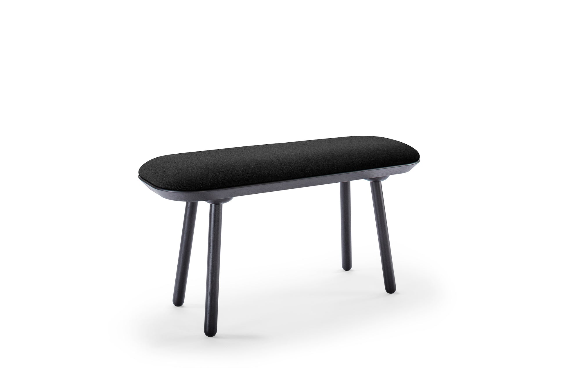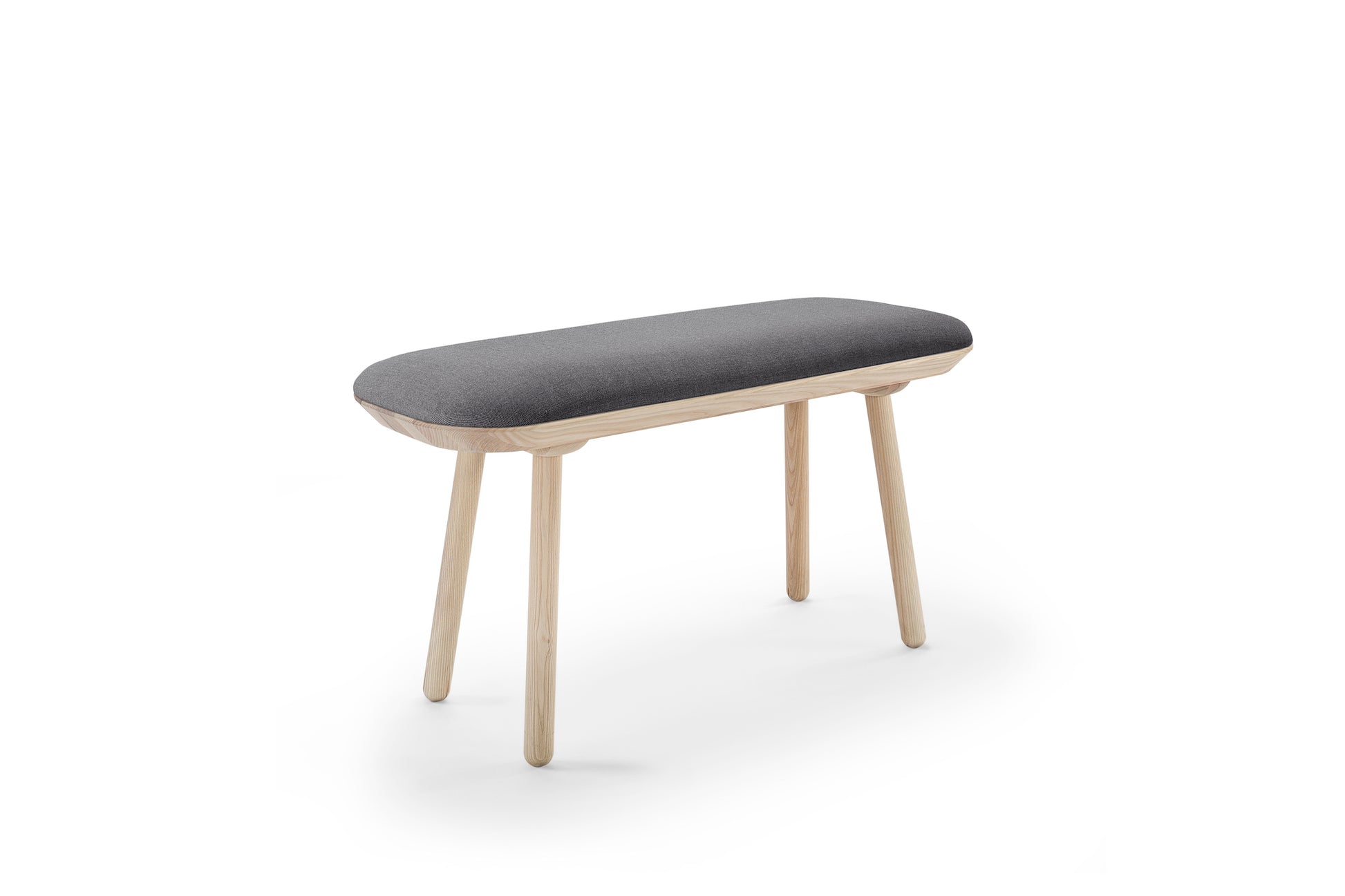 Made from solid ash wood, the Naïve Bench is as strong as it is visually gracious. The item can be made in two sizes, with or without the padding that comes in the eight colors of the Naïve Low Chair. If unpadded, the bench seat is either black or oiled ash wood.