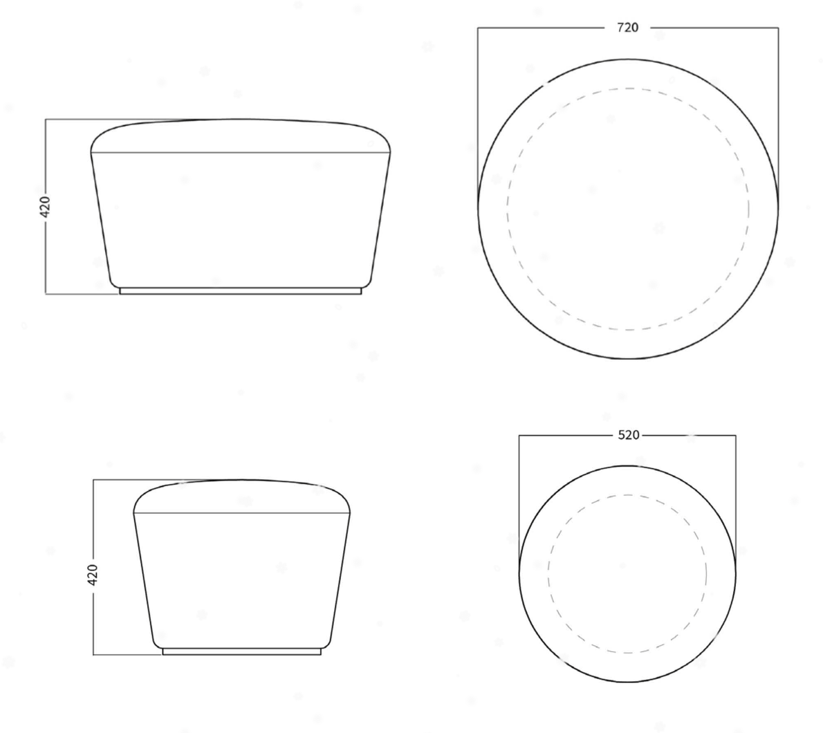 Naïve pouf is available in two sizes and the same fabrics as Naïve Sofa — from soft velour to cozy boucle or natural leather.