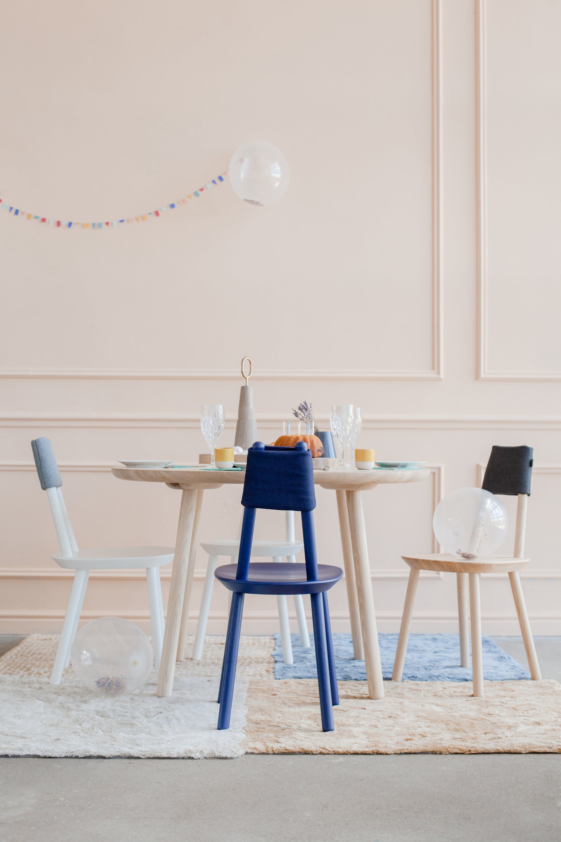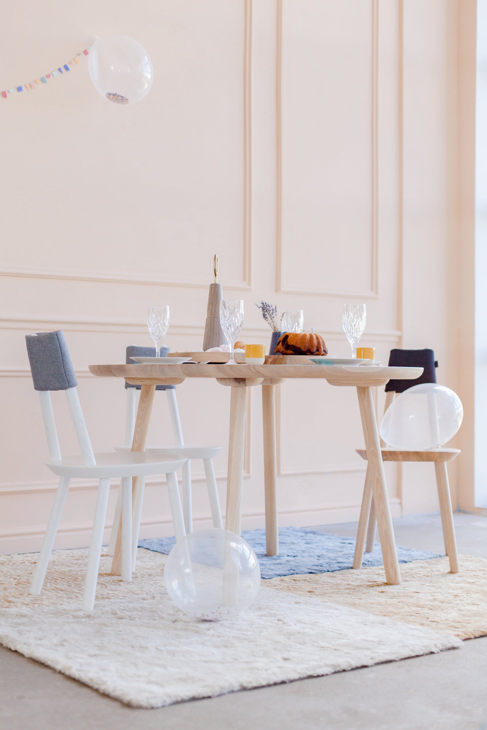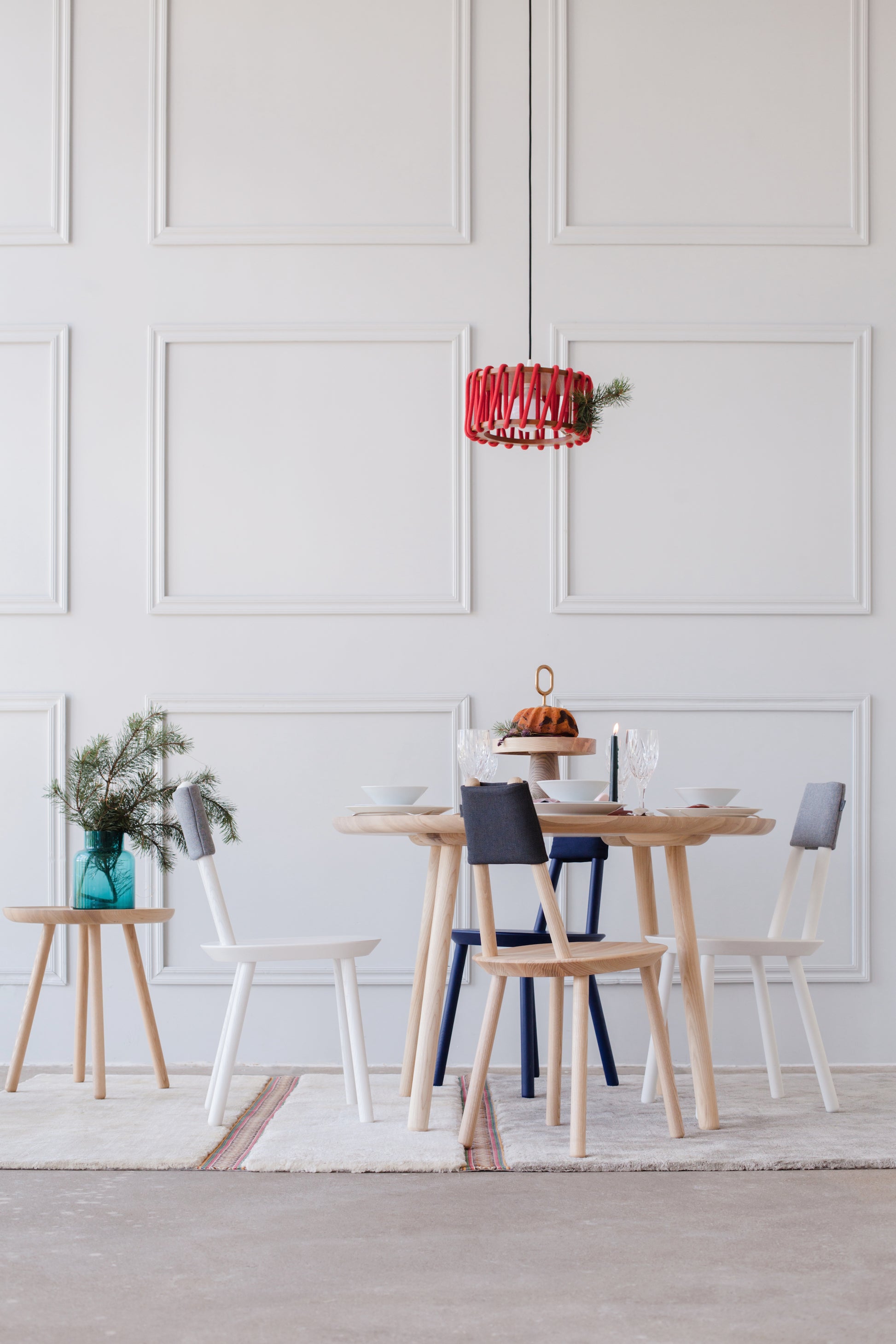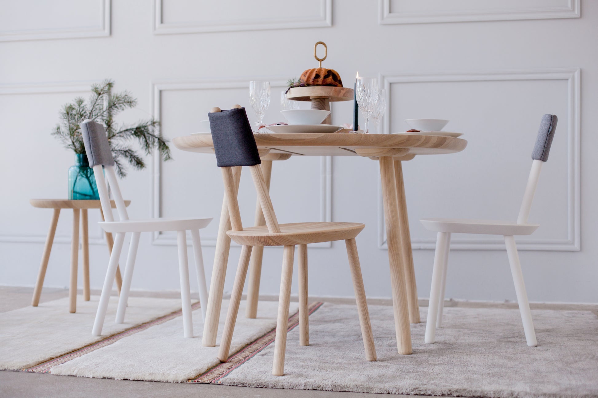 The table’s modest and clean form is decided by a simple but lasting construction – each leg has its own base under the tabletop making the table strong enough to serve generations to come.