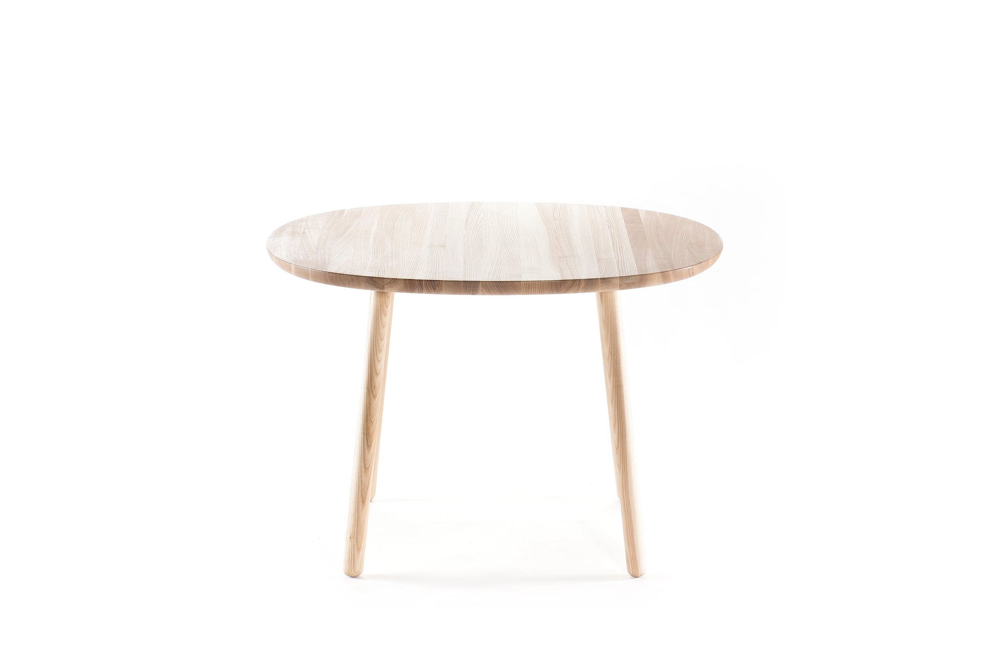 The roundish tabletop contour is designed to create an inviting and cozy atmosphere for everyone sitting around it. The table is available fully oiled.