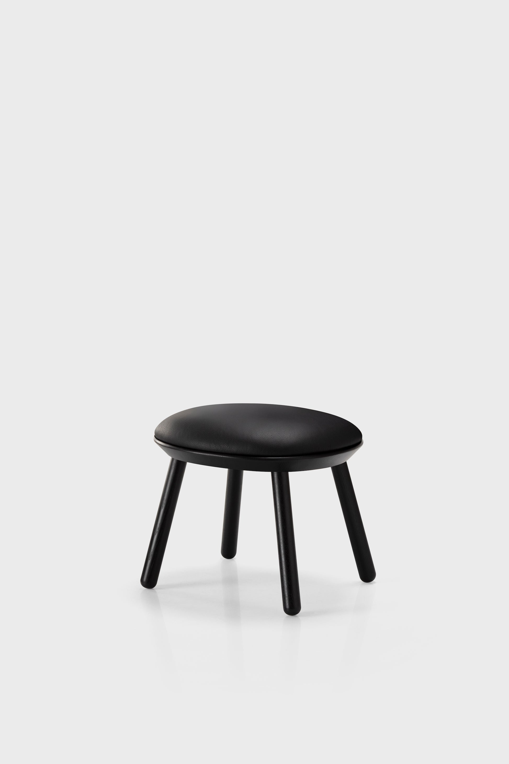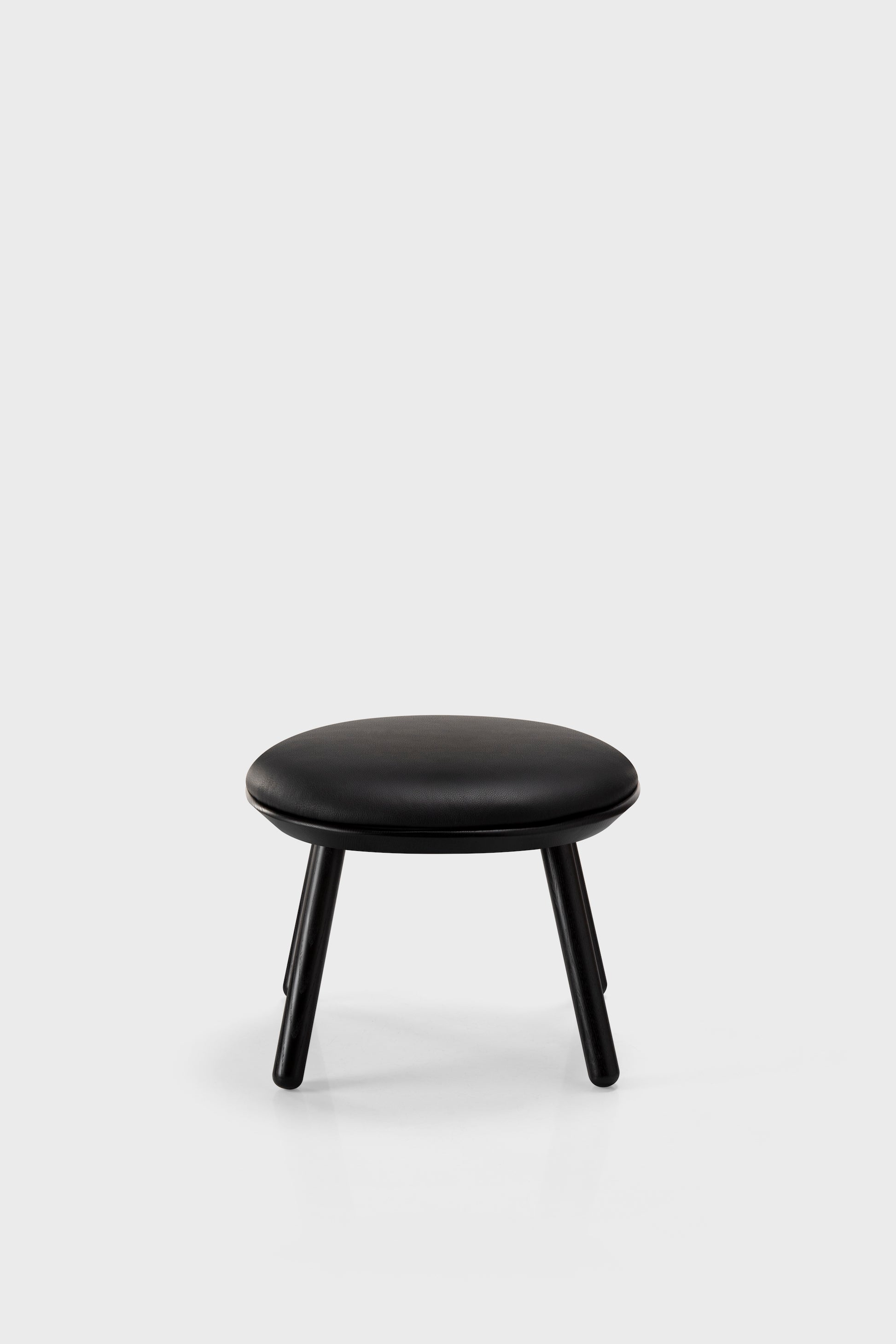 Just like the made-to-order Naïve Low Chair, the Naïve Ottoman comes in different colors, with the frame being either black or oiled ash wood. The padding is made to aesthetically accommodate the frame, whereas all the solid links between the different materials result in a highly reliable piece of furniture.