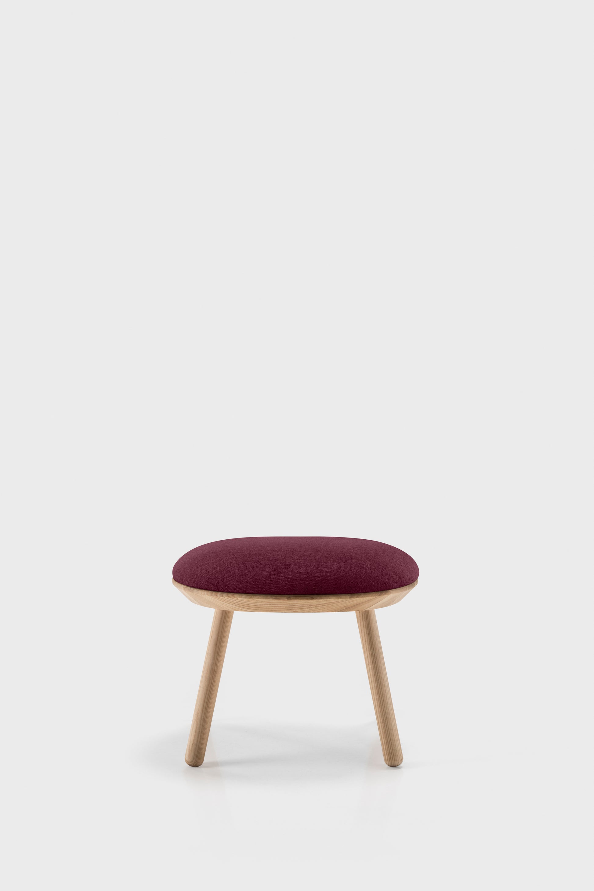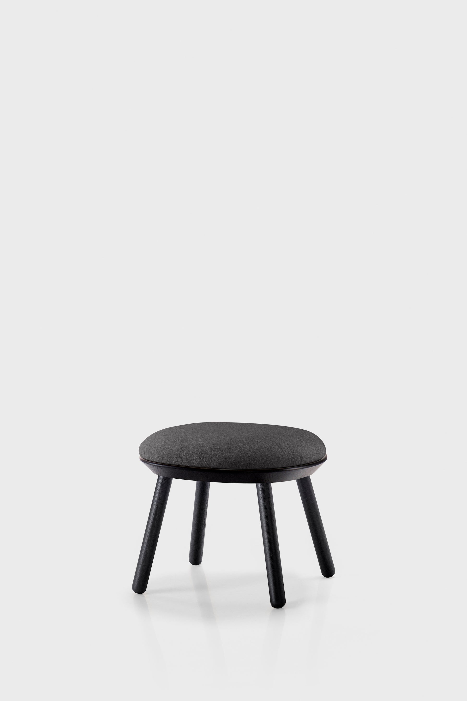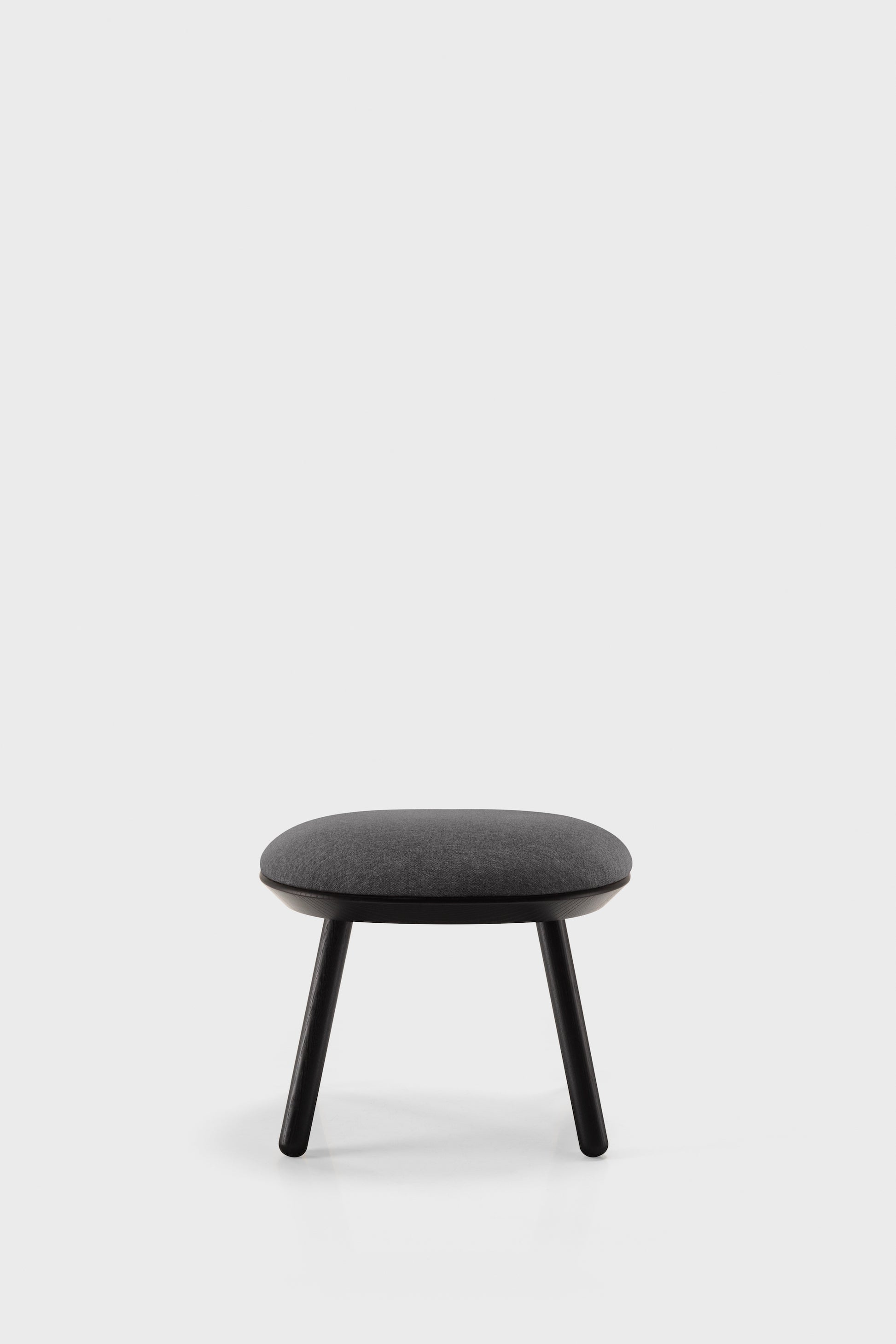 Just like the Naïve Low Chair, the Naïve Ottoman comes in different colors, with the frame being either black or oiled ash wood. The padding is made to aesthetically accommodate the frame, whereas all the solid links between the different materials result in a highly reliable piece of furniture.