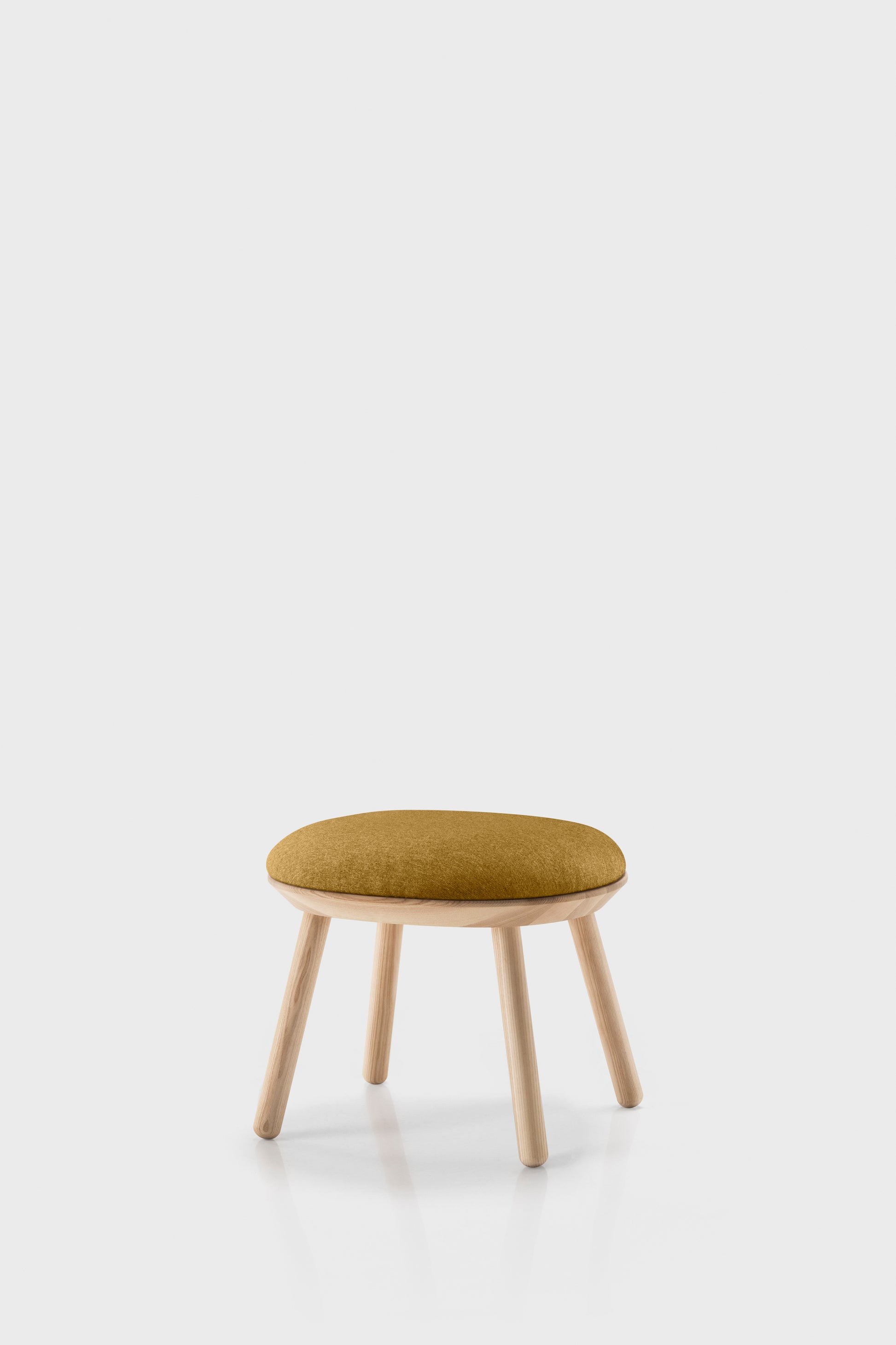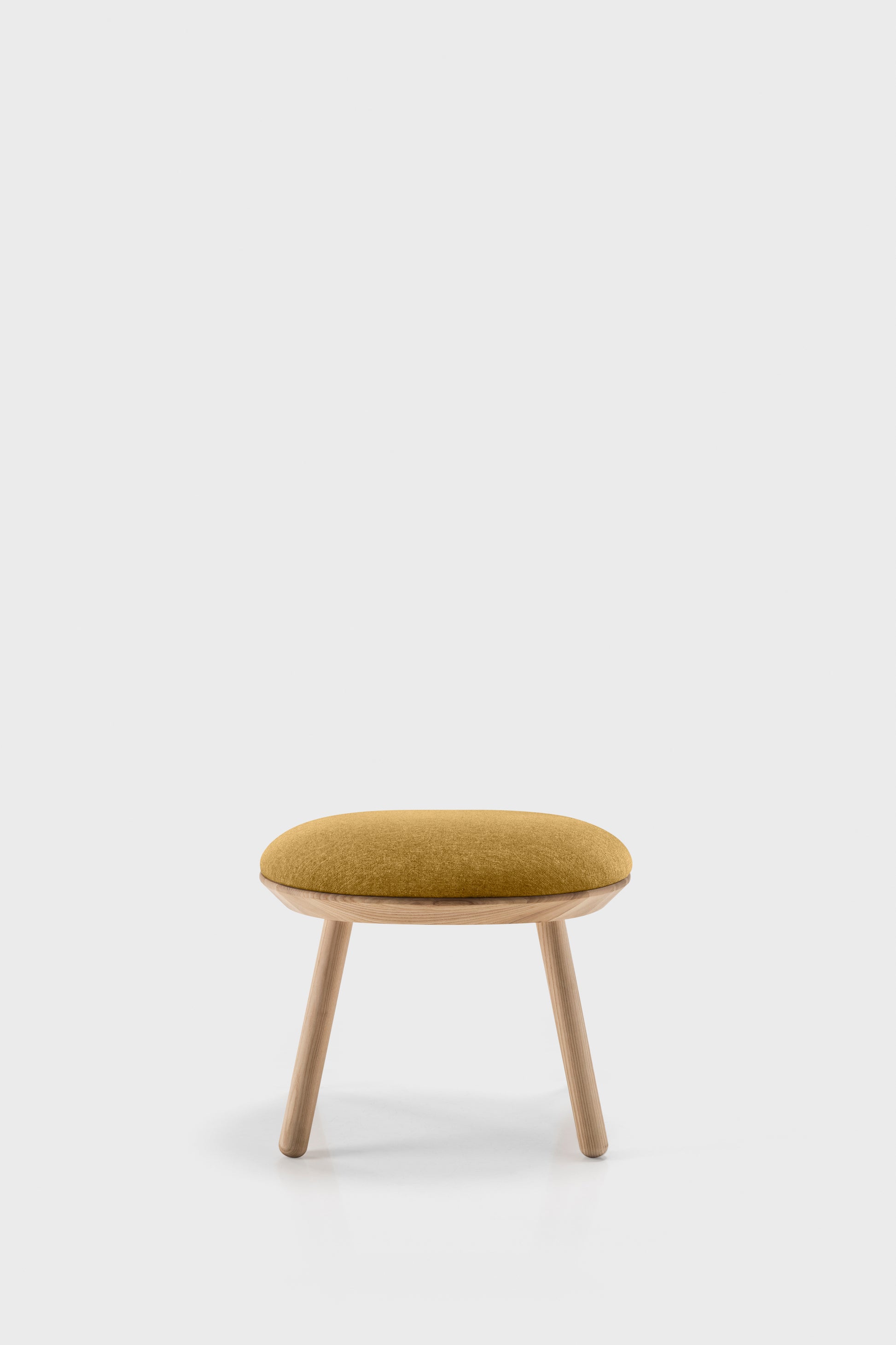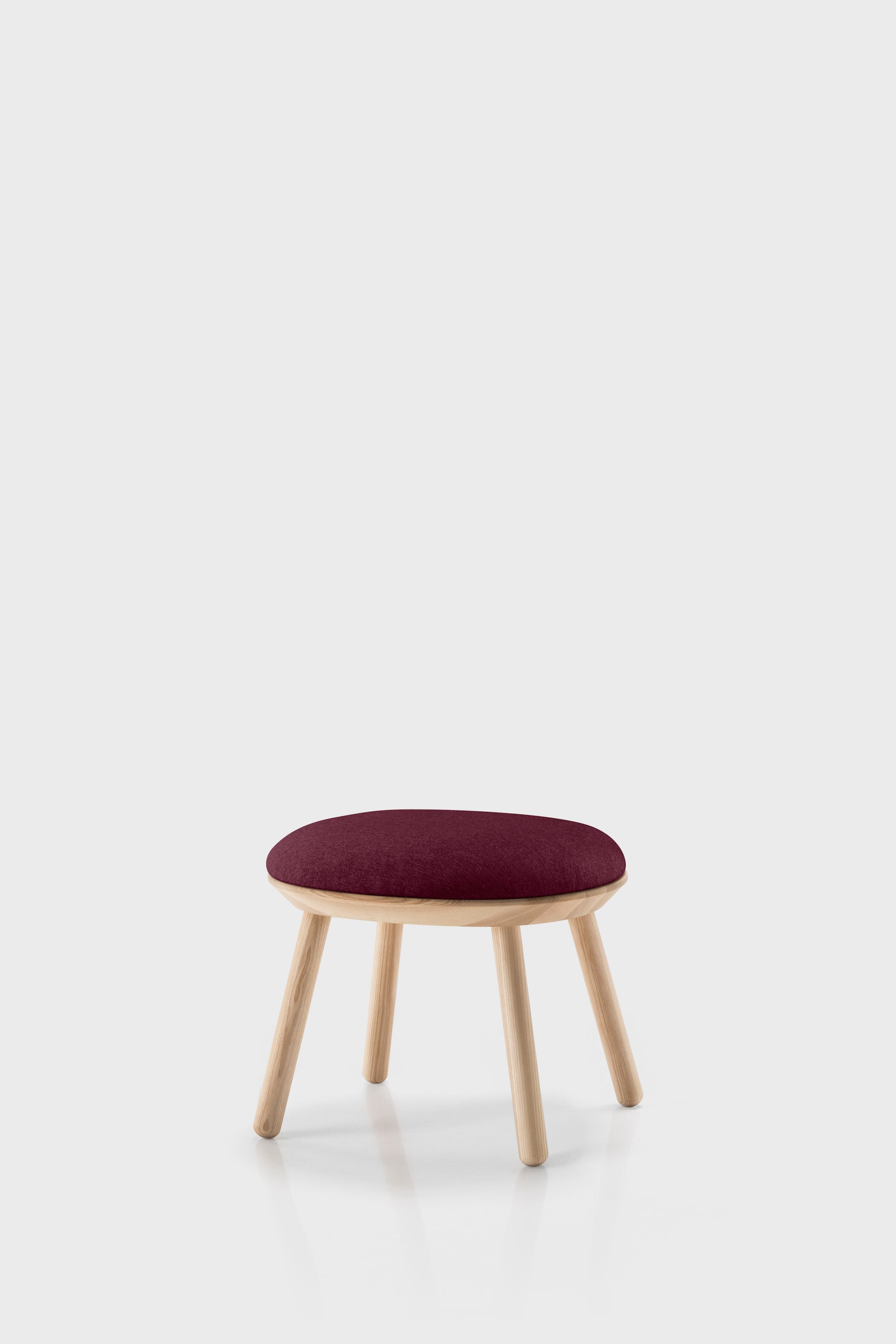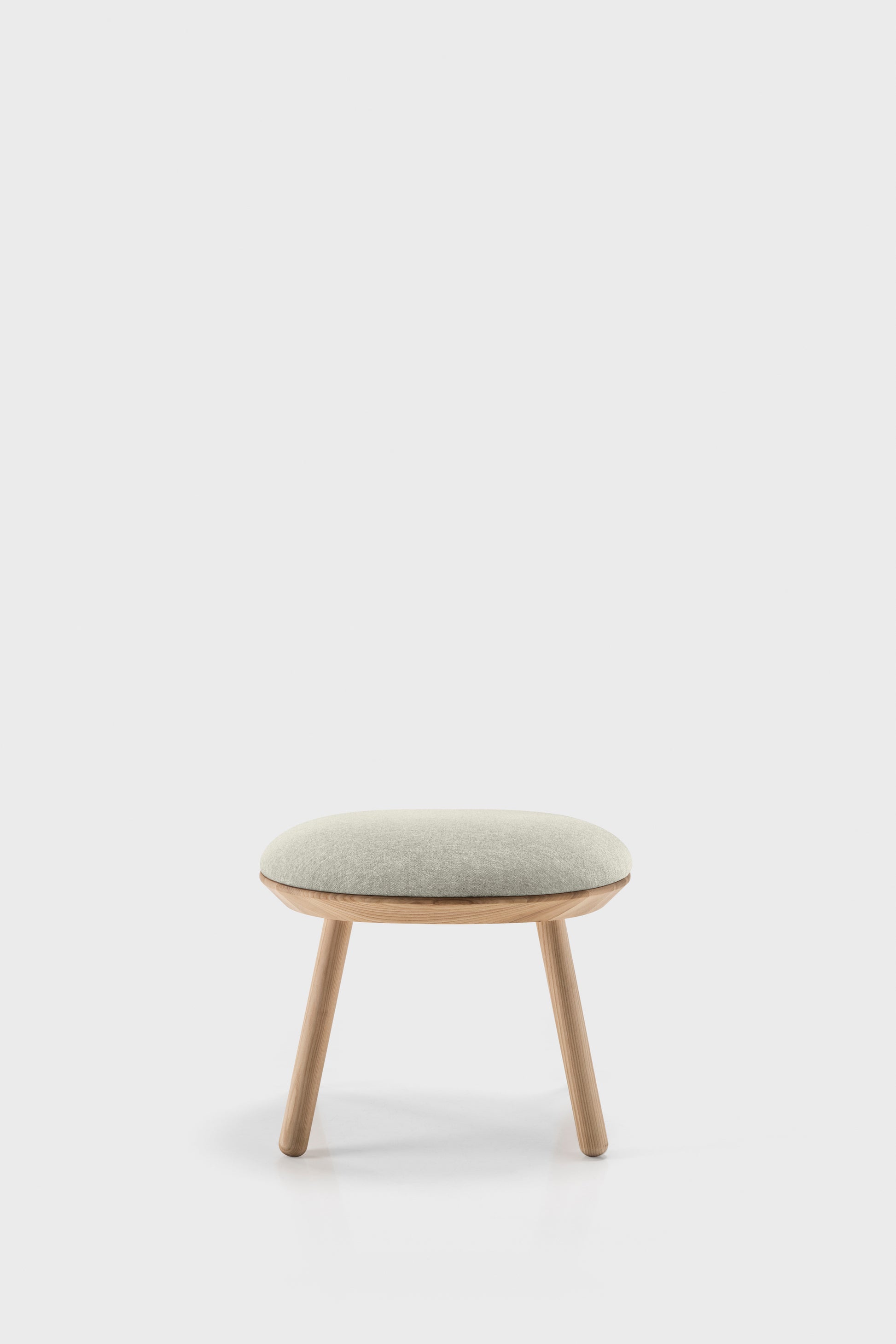 Just like the Naïve Low Chair, the Naïve Ottoman comes in different colors, with the frame being either black or oiled ash wood. The padding is made to aesthetically accommodate the frame, whereas all the solid links between the different materials result in a highly reliable piece of furniture.