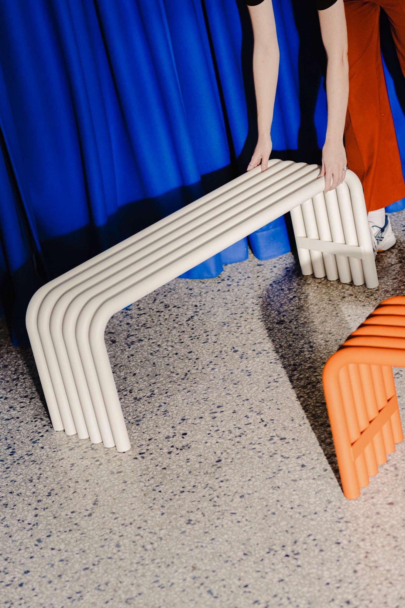 SOMEFANCYNAME.COM presents you the Nokk Bench. This made-to-order bench is crafted with a durable steel structure that is both waterproof and resistant to damage, making it ideal for indoor and outdoor spaces.
